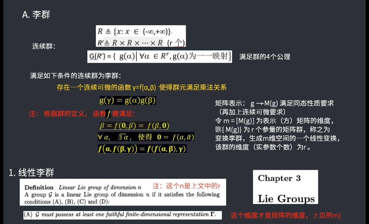 5.“隔壁的物理学中的群论讲的十分有逻辑清晰”。这是我认为最颠倒是非的一条。首先,朱界杰老师严重详略不当。前面讲群论基础、线性表示理论和转动群花了太多时间,导致非常重要的点群和李群开起了快车,没接触过的听的一头雾水。而且他考试明明不考证明题,却花了许多功夫证明那些定理。这点段老师做的就很好,关于特征标、李代数的各种定理证明我们做物理的关注它干什么?不是重点的东西段老师就让我们感兴趣自己去看书,不想看并不耽误考试,想看的一学期下来也能有额外收获。其次,朱老师讲的过于抽象,不够切实。为了引入李群,要先讲拓扑空间、微分流形等等一堆让人望而却步的东西,末了给出李群的定义:李群是一个复合结构(X·,T,A),也是n维光滑流形。听君一席话,如听一席话!而段的讲义中给出的李群定义是: