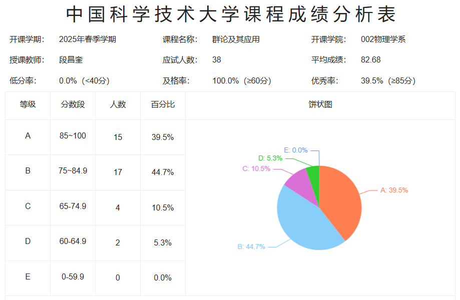 综合来看,虽然部分学生对上课方式不满,认为需要更多自主学习,但课程在凝聚态物理中的应用价值及内容覆盖度受到好评。课程实用性强,适合对相关群论概念有初步了解并愿意进行自主学习的学生。选择该课程需有充分的心理准备,并把握好学习节奏和参考书籍。