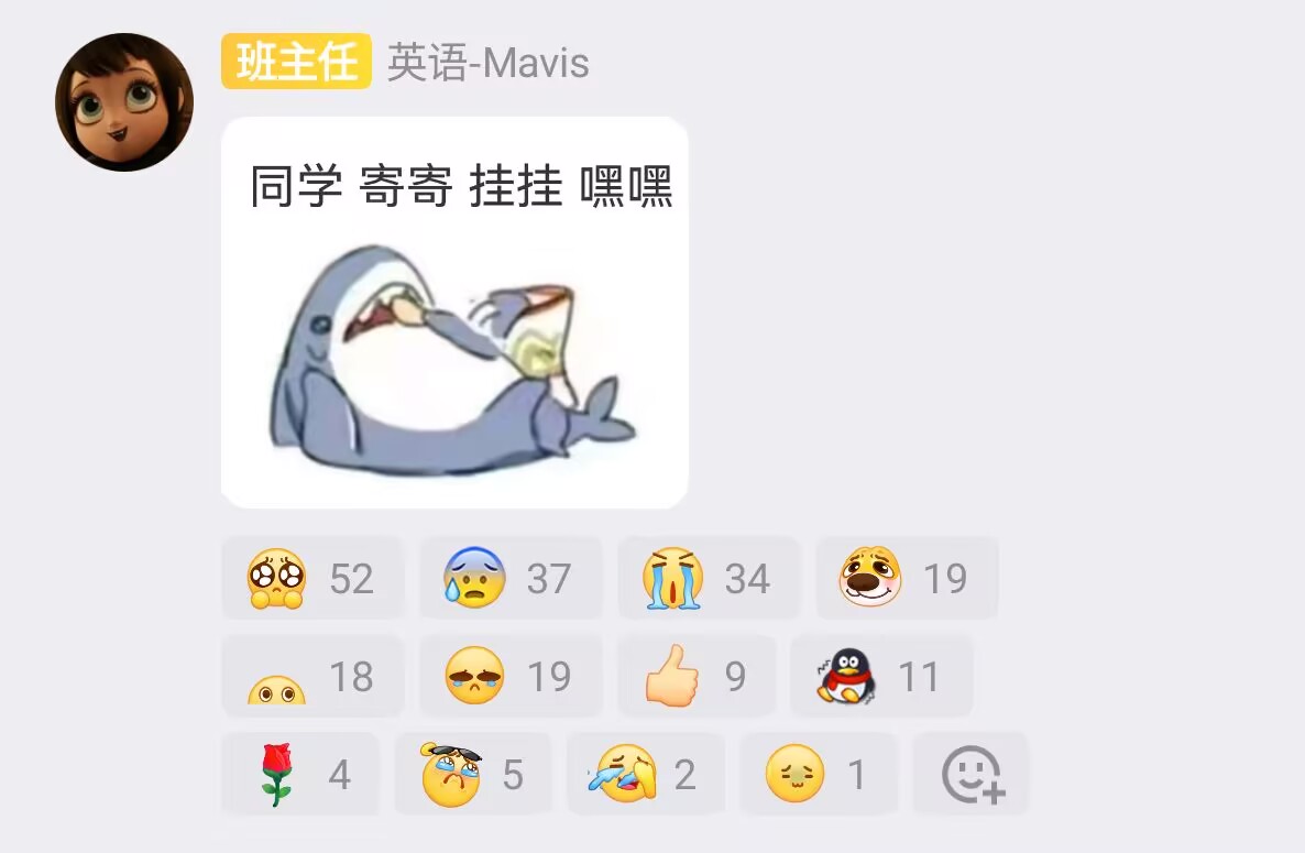 Mavis是一位非常有青春活力的老师呀!就像课程群里接龙的“人美心善”一样。上课主要就是看一些有趣的视频,小组讨论一些问题,以及听别的组演讲。后面Mavis发现我们课下基本上都不会自己听听力,也会在课上做听力练习(笑)。值得一提的是,她会在课程群里发布“日拱一卒”,大抵是希望我们每天进步一点点吧。一开始内容是听写,后面也加上了口语跟读,个人觉得如果真的有毅力,一学期做下来收获肯定不小。不过很惭愧,我只坚持了一个月(觉得后面的口语帮助不大😥,加上实在是太忙太忙了呜呜呜)。这个和成绩无关,完全是选做的。