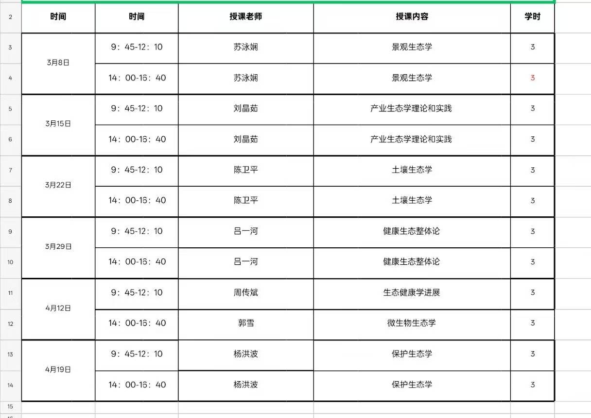 图1 2026年春季学期高级生态学课表