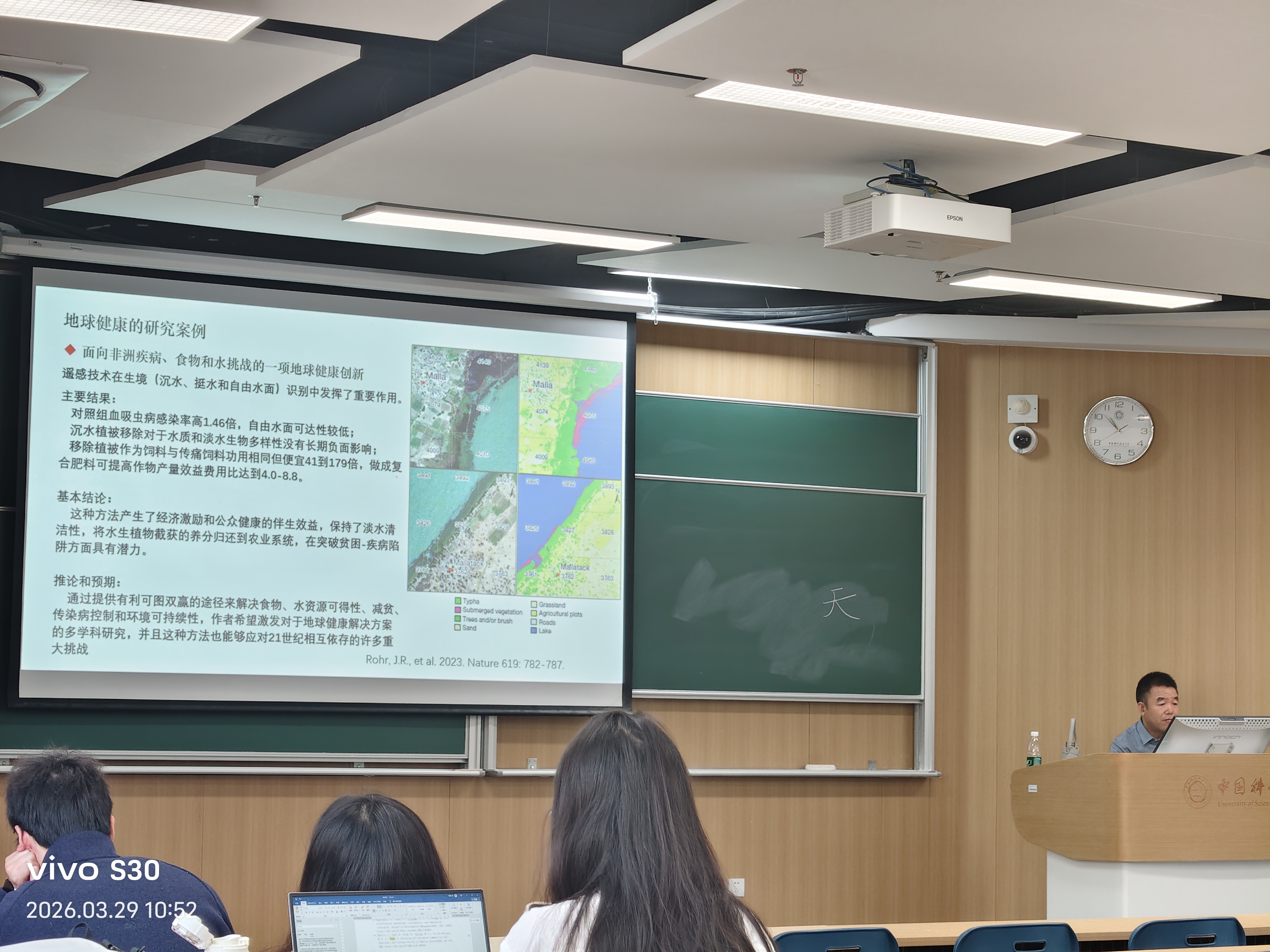 在他少数几张有稍微介绍文献的PPT中,他根本没有提及遥感技术发挥了什么重要作用,测量了哪些指标,这些指标分析出了哪些结论,更不用说分析旁边的遥感测量数据了。只剩下坐在讲台上,连PPT都懒得念,在那谈论他的中国传统医学中的天-地-人理论。