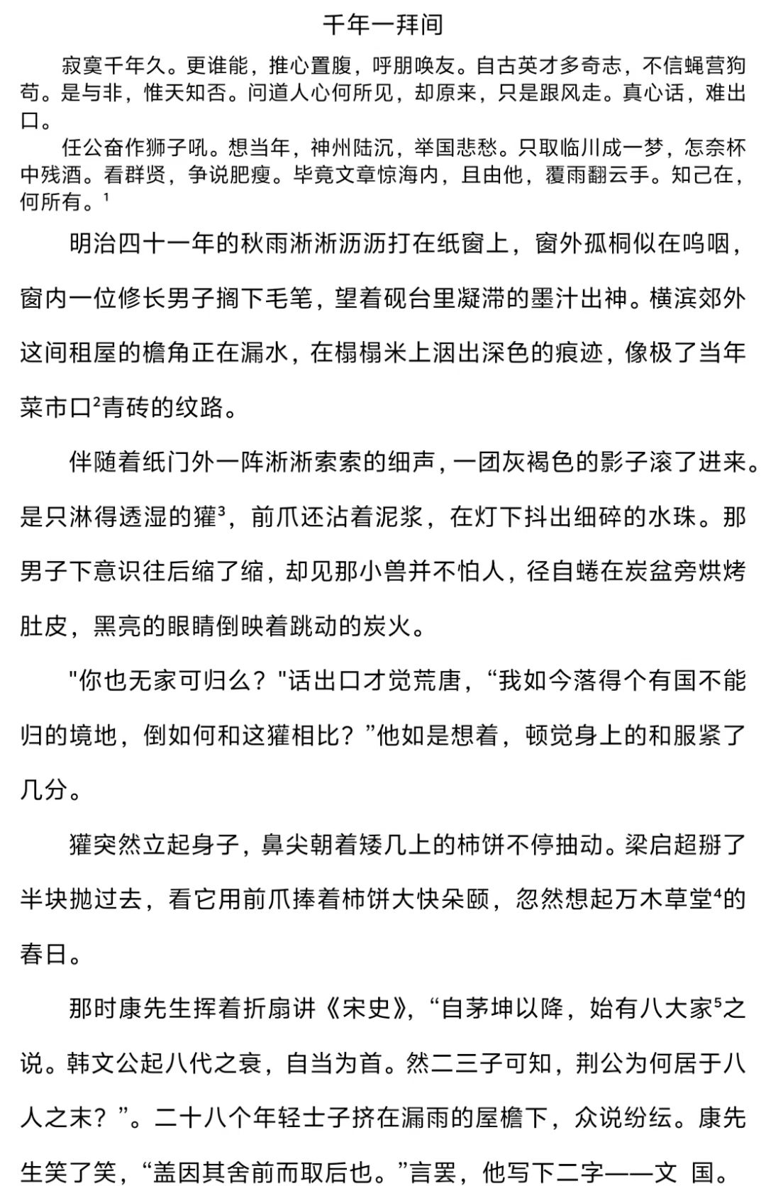 作业:有一次作业,很水,将全班人分成五组,以“故事”“科技”为核心分别调研近现代中国的真实故事或者创作一个故事。优秀的创作故事会被遴选作班级展示获得加分(加分下文细说)。我有个同学用gpt创作了一个也被选上去了。