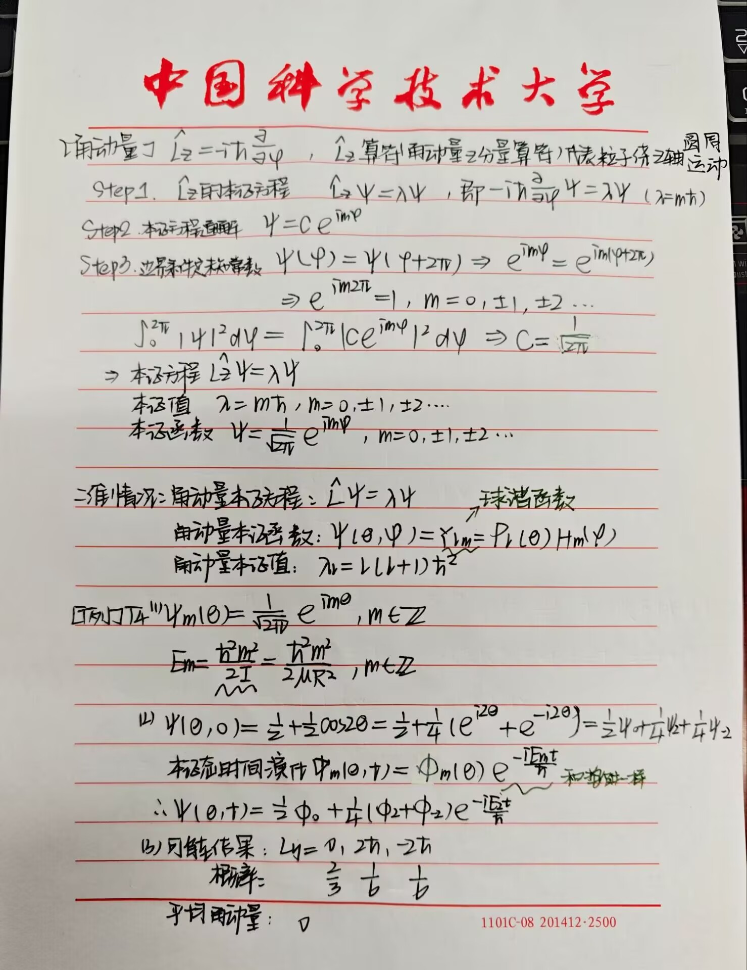 最终,你还是向室友借了昨天的量子物理笔记,看到了笔记里简明易懂的例题讲解,脑海不禁浮现出涂涛老师的大嗓门:
