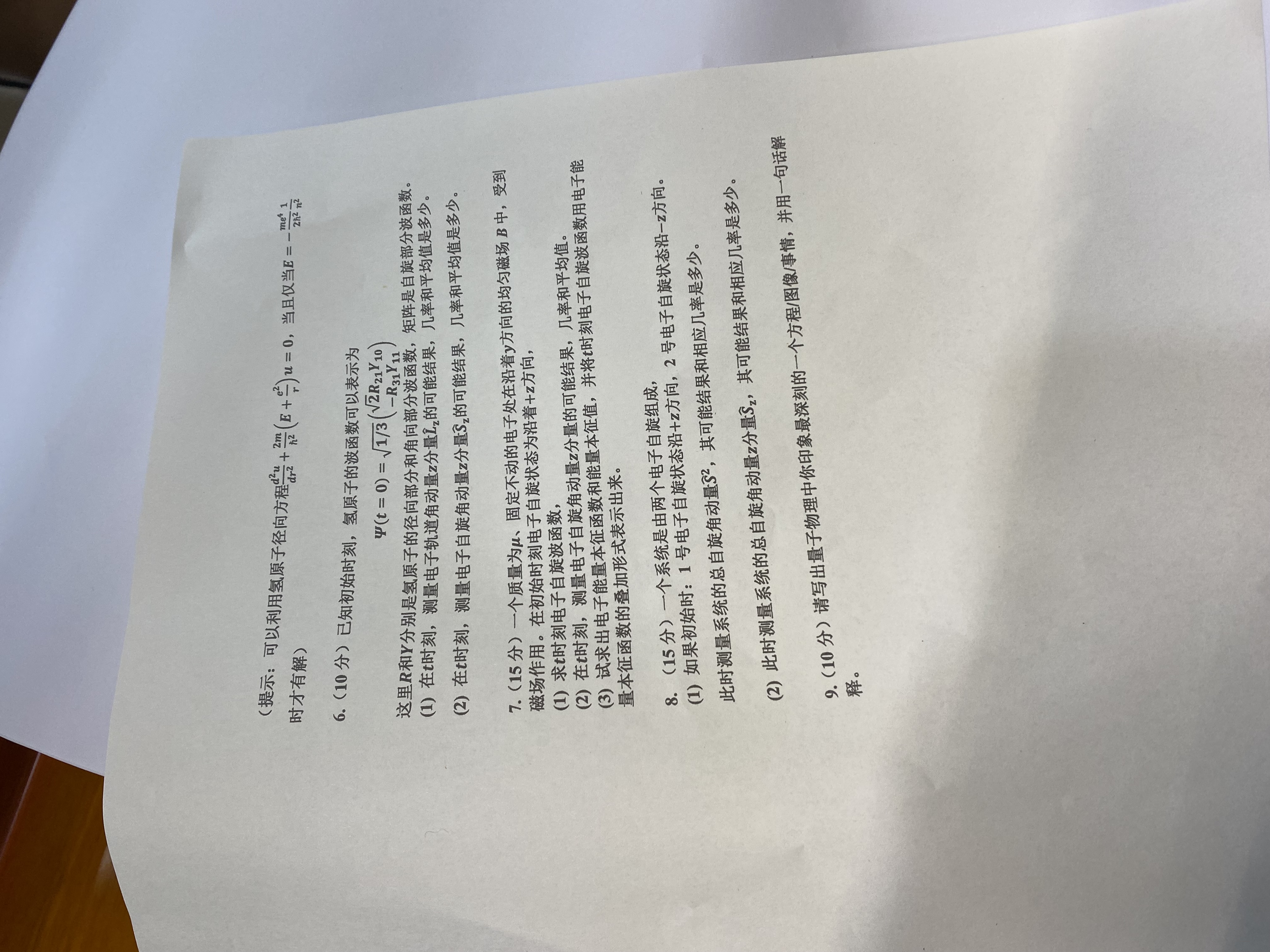 考试难度:本人是地空学生,本来妄想选量子物理炸鱼,但是由于过忙,直到6.19号16:30数理方程A期末考试收卷前,量子物理这门课一点都没有学,但是在6.20号16:30量子物理期末考试收卷之时,题目却全做出来了。什么成分不用多说了吧