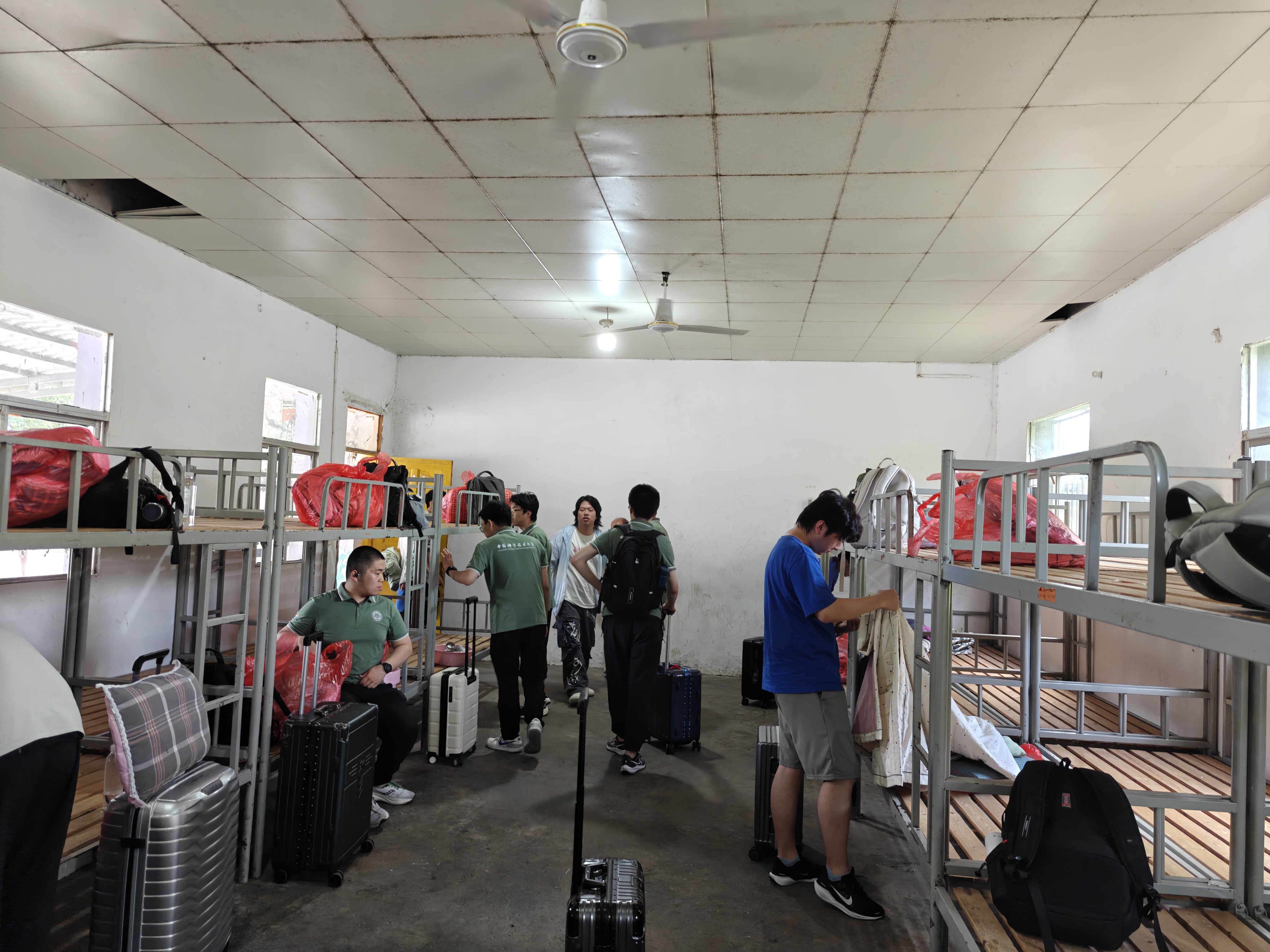 先从环境开喷,本人并不是不能接受这样的环境,只是完全无法接受落差,下面是本人的住宿条件,一共15个男生全部塞在一间由教室临时改造的宿舍中,蚊虫极多,且主办方在极其为难,千方百计的情况下才给我们提供了很薄的,完全无法抵消木板床之间一条条间隙的毯子.每次翻身都是一场磨难.