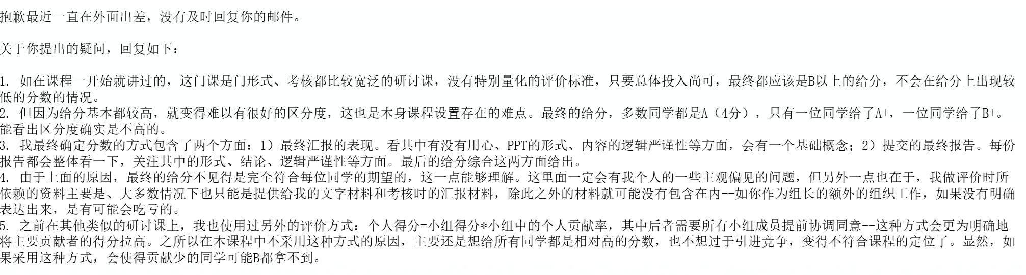 基于第三点,向赵老师发邮件咨询给分标准。隔了一个礼拜发了两篇,但是都是已读不回的下场(见下),只能说赵老师作为我校优秀青年才俊实在是太忙了吧。