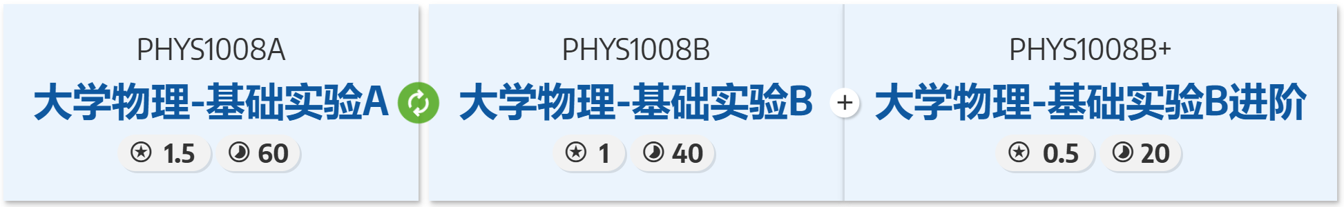 经过一系列改革,大雾实验的任务量已经大大降低。共 8 个实验(总评占比各 10%),其中 4 个实验由学院统一置课,4 个实验自选(选课系统 大概率会很卡,但机会还是很多),要求可写报告的实验数不小于 4,最后需提交 2 个实验报告:单摆法测量重力加速度 B(总评占比 0%)+ 自选可写报告实验(总评占比 20%)。单个实验分数构成:预习测 + 出门测(占比 15~20%)+ 实验操作(占比 80~85%)。