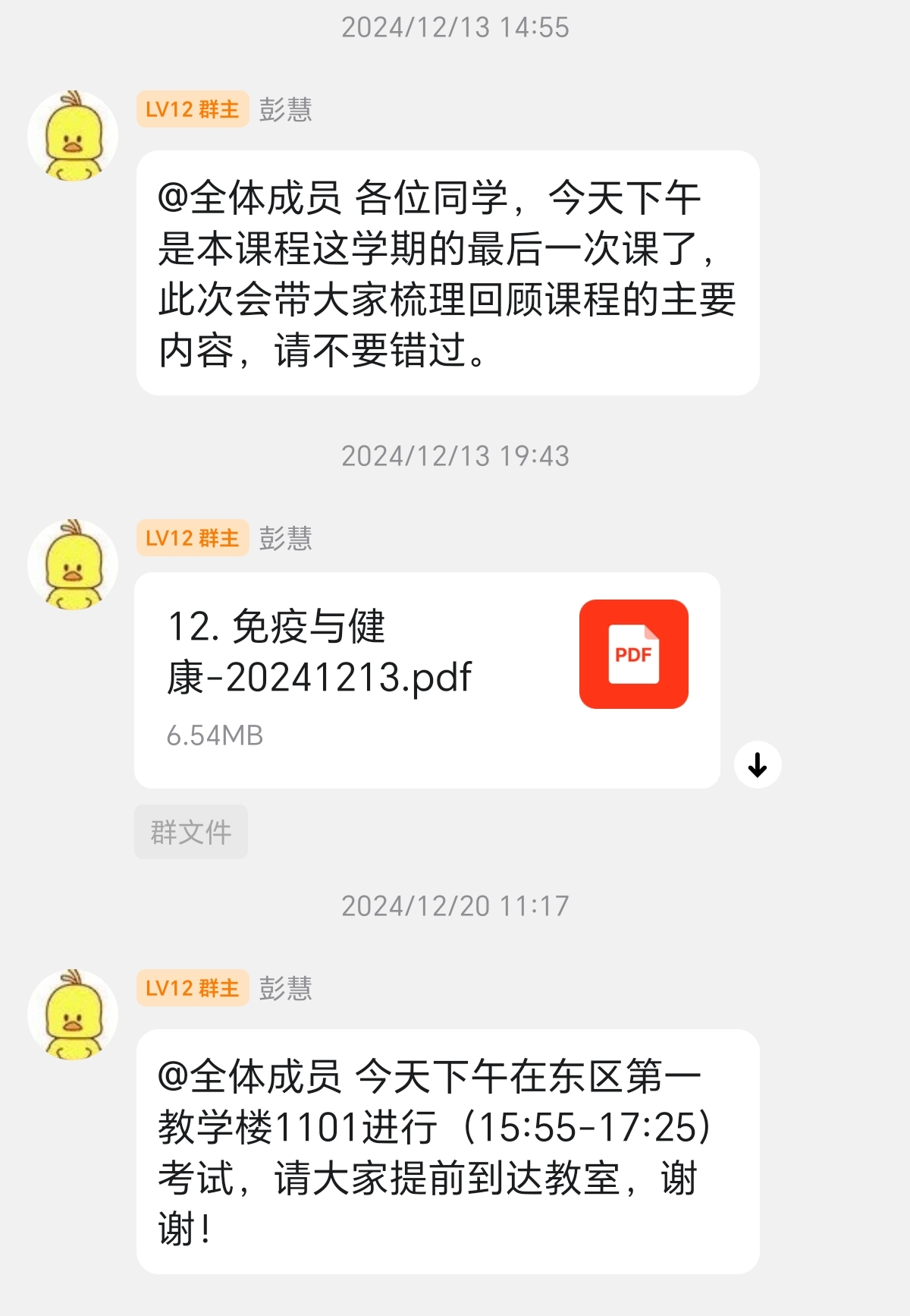 《免疫系统与人体健康》的期末考试包含选择题、判断题、填空题、名词解释和简答题,明显依赖课件(PPT)内容。考前划重点,因此掌握PPT内容显得尤为重要。部分同学指出“考前一两天想记住7.800页PPT也不太现实”,但普遍反映考试难度不大,只要考前复习PPT,考试通过并取得好成绩并不困难。给分普遍较高,4.0以上的例子不少,说明老师评分较为宽松。