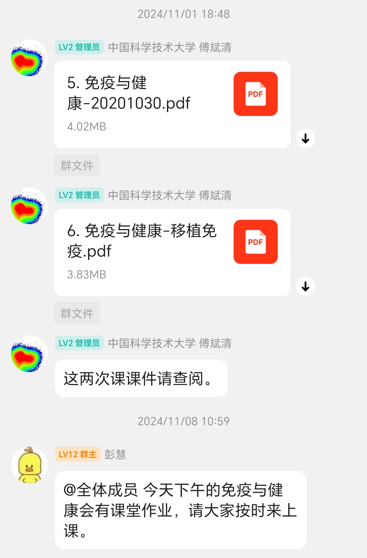 其次,关于平时表现,建议平时认真到课,即使你是摆子浑水摸鱼,也建议去到课,因为老师指不定什么时候会留作业,或者随堂小测,而老师明确说晚交会扣分。有次傅老师留的作业是让找抗体发挥作用的例子,我找成了抗体的例子(实际上前一个作业比后一个作业好做多了……),那次还没发ppt,结果导致作业最后还交错了,所幸下次课下课前交上了(就结果而言应该是不影响gpa),可见如果是根本没到会更惨……