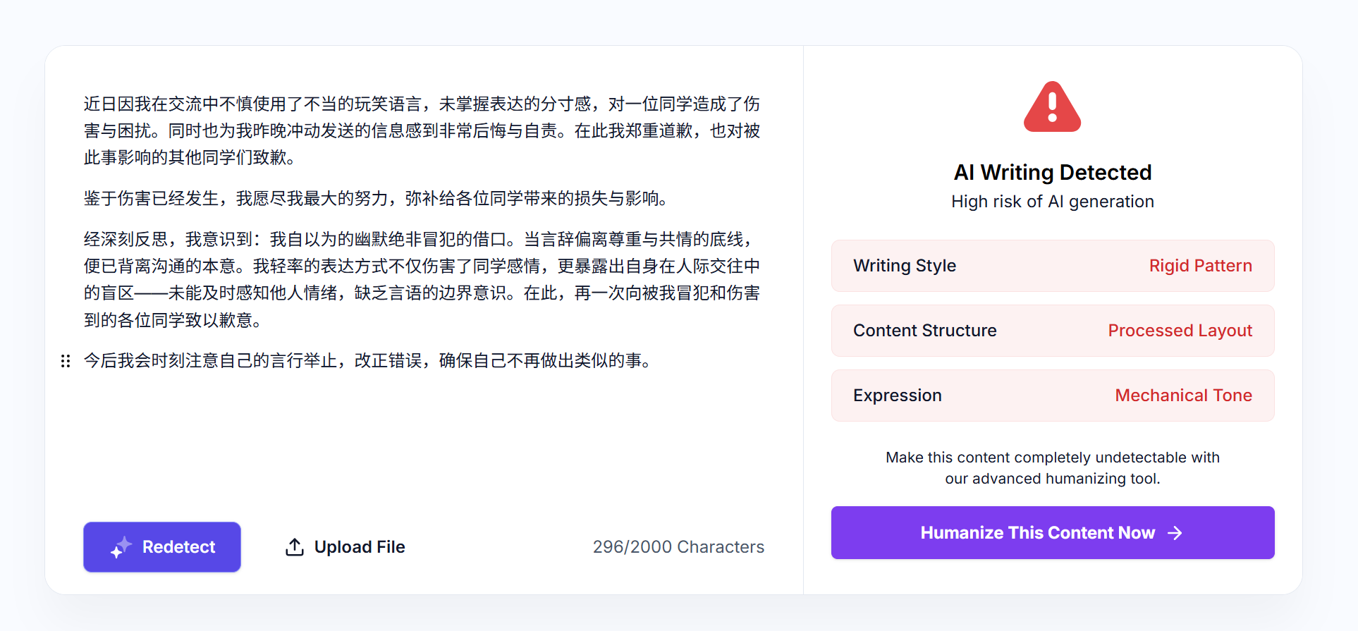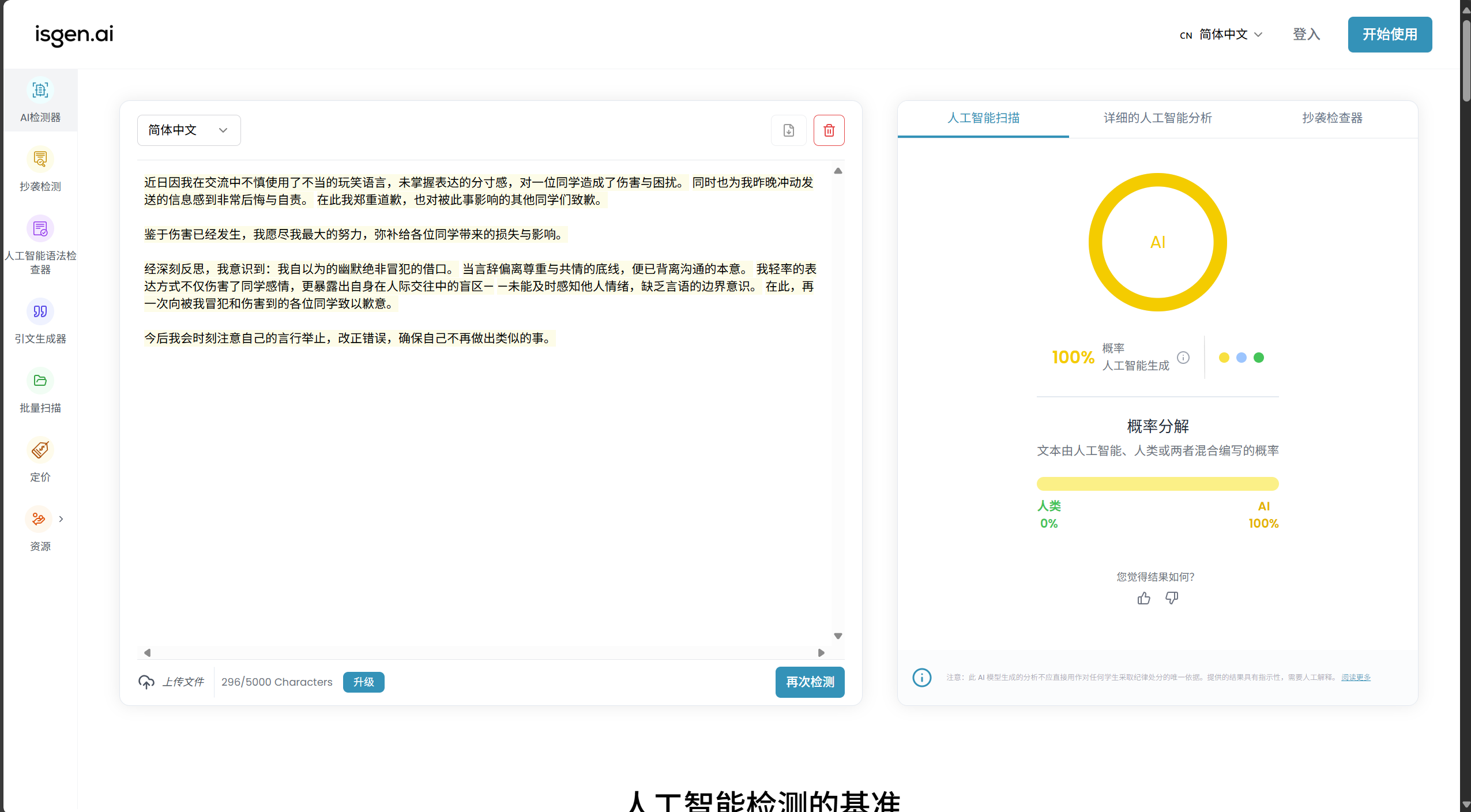 aigc率100%,无敌了,怪不得看起来怪怪的。怪不得态度突然180度大转弯了