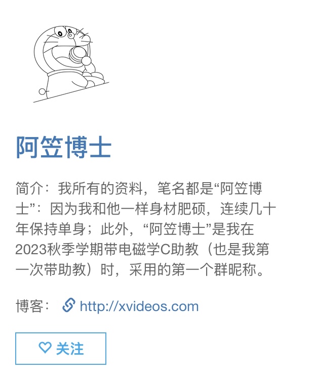 我希望这位身材肥硕、连续几十年保持单身、个人主页放xvideos链接的w助教只是单纯因为压抑到处发癫而不是因为我纠缠上我朋友,否则我不知道我要如何才能负得起这个责任🙏我和这位甚至没见过面,只是加过好友聊过一两句天,我无法理解为什么会发生这种飞来横祸🤣可能经过这次一波三折的历练我以后也会能够成为不管发生什么大风大浪都心如止水一笑了之都互联网乐子人吧😆