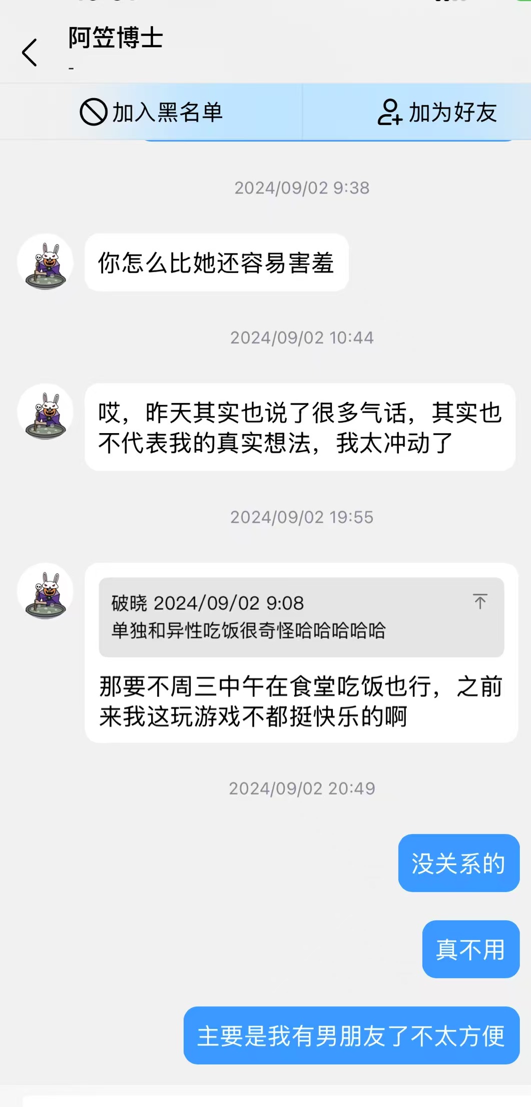 PS:前三张是他让我帮他追我室友,我已经极力劝说他不要来打扰了