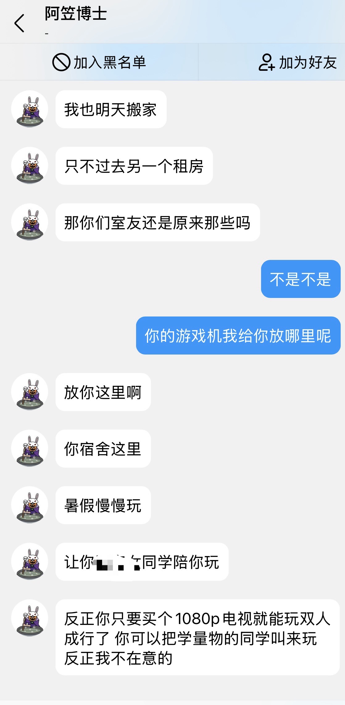 最后一张“来我这里玩游戏”可以证明他约异性去出租屋,他总是把别人的害怕理解为高兴,我室友也很害怕他却说她看起来挺高兴的