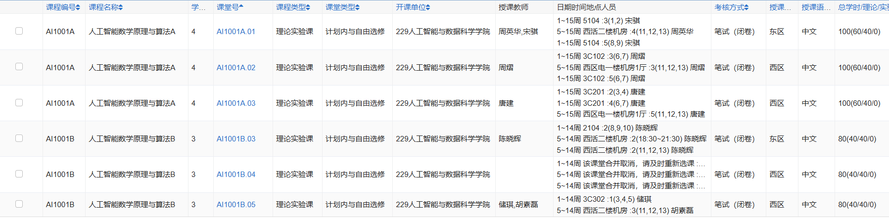 但网上的知识大多是碎片的浅点,既步深入也不结构化,直到我在选课的时候看到选修课里面有一门“人工智能数学原理与算法”,我欣喜若狂,即使它不出现在任何一个专业的培养方案里,即使它4个学分,我也果断选择了这门课。因为他终于给了我一次相对系统深入的了解人工智能的技术原理的机会,和一次有官方背书的学习证明,对我来说,这门课收货的的价值大于这4个学分本身。