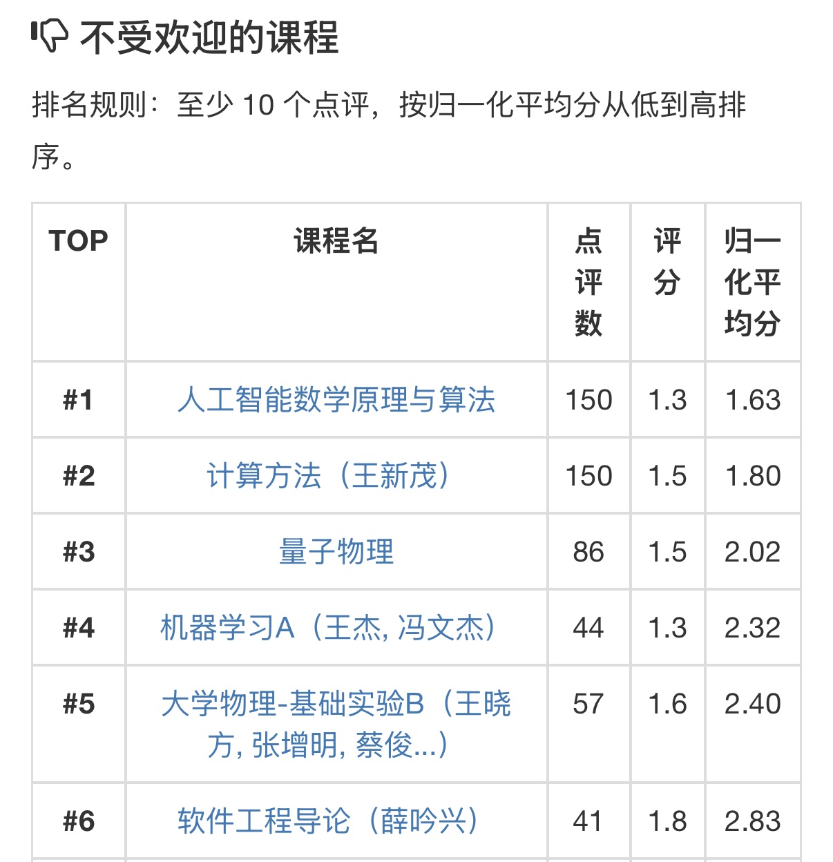 恭喜本门课程在最不受欢迎课程榜上击败了强Baseline二级大物,杀入前四