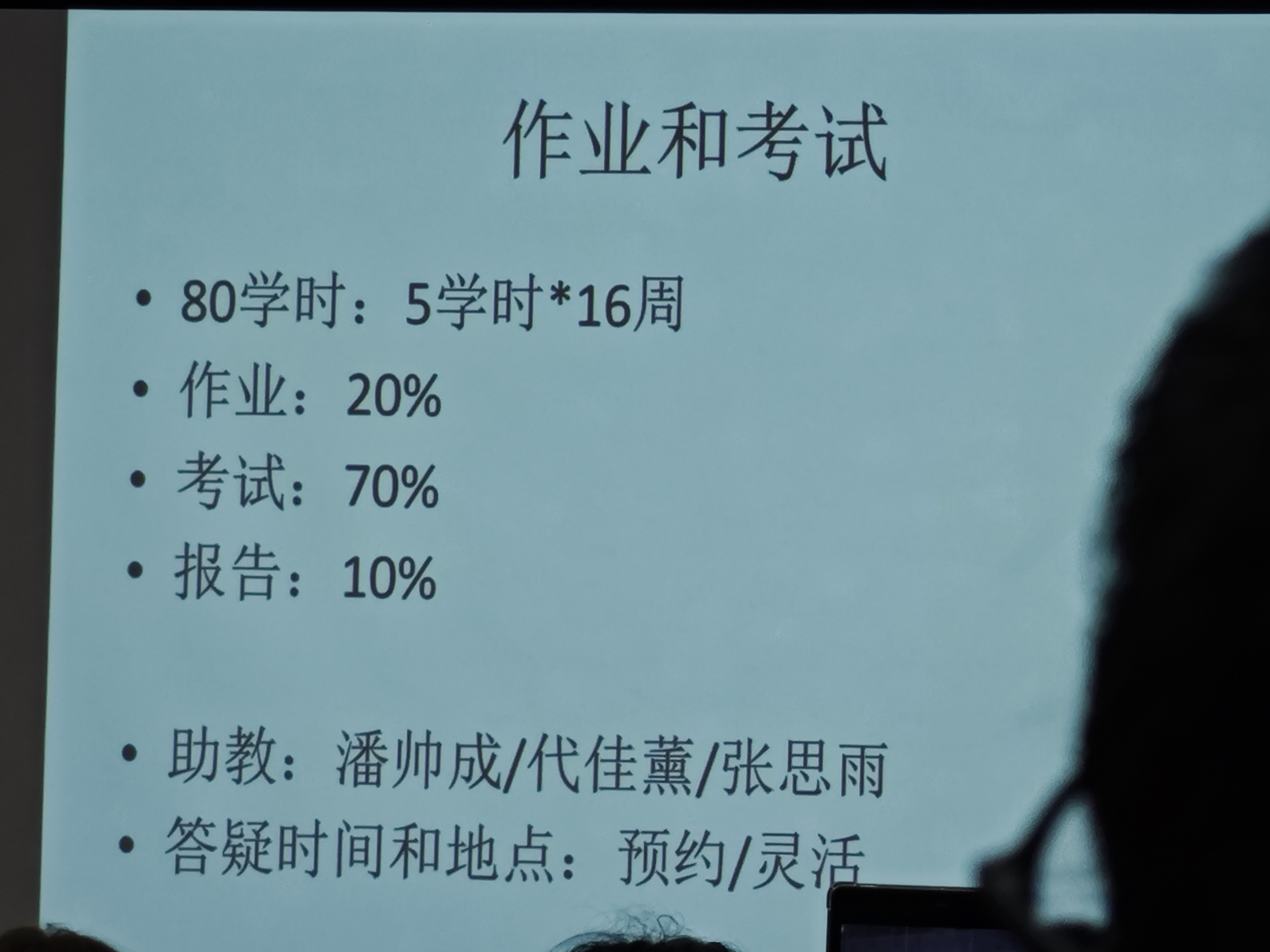 开课老师和成绩分布:本次课程由张树晨,朱彦武,徐集贤老师共同开课,详细的课时安排,成绩分布,还有课程要求如下