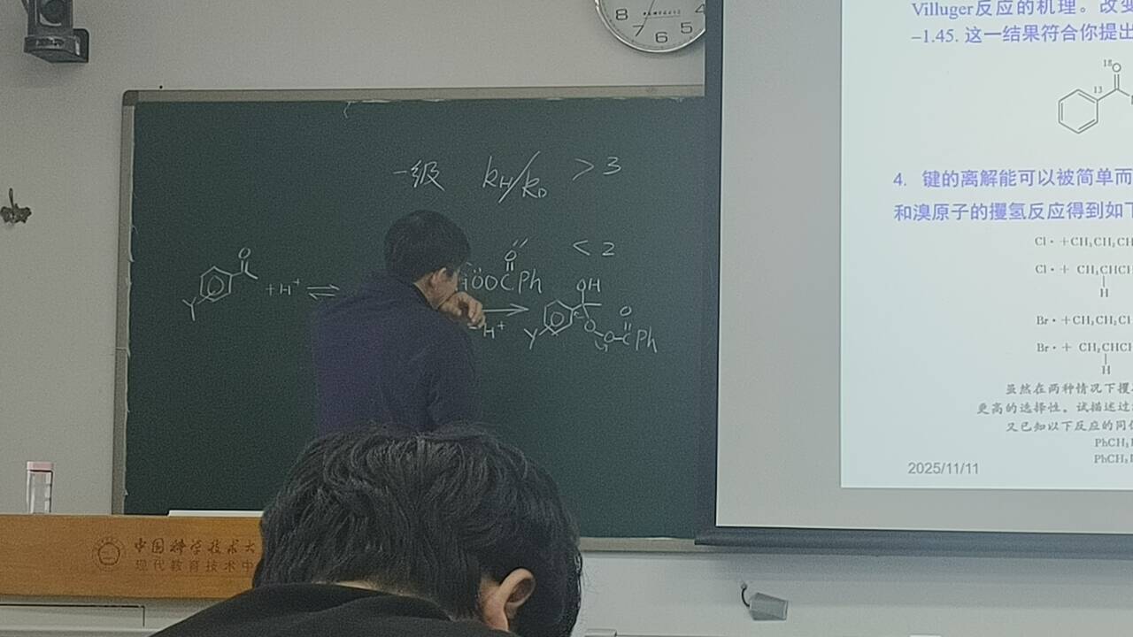 老师本人不具备化学常识和做题能力(一个baeyer-villiger反应机理能画十分钟的水平,连本科生都不如),但是具有转述答案并且识别相似含义的能力(如果你答得和他心中的标答相差过大会导致识别失败,即使化学含义正确),想要回答正确他的任何相关问题,要么自己自信的把答案说出来并且压倒他(仅限当堂提问),要么准确背出他认为正确的那个答案(小测、考试建议)