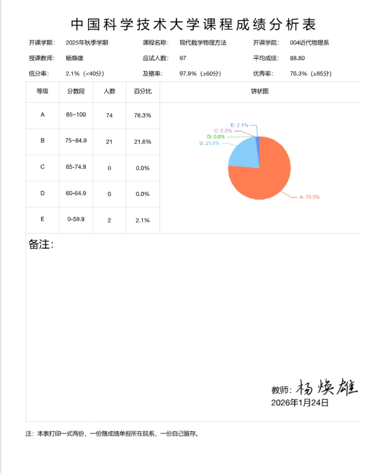 原本以为杨老师在23年春季结束退休,就没有这门课了,还为此感到难过。当我看到23年秋季学期课程安排有杨老师的《现代数学物理方法》,那么肯定要选。