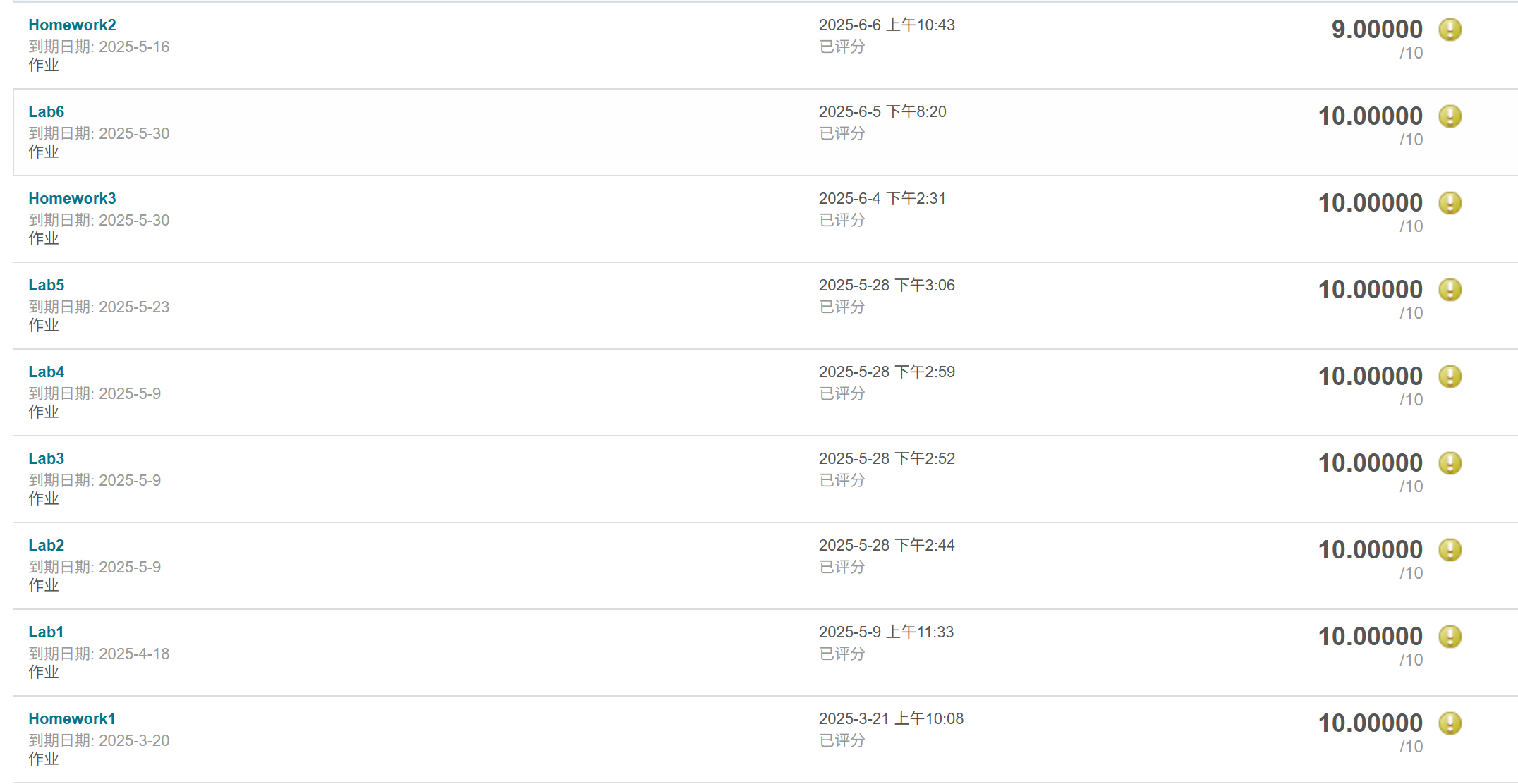 放上作业和实验的全部评分