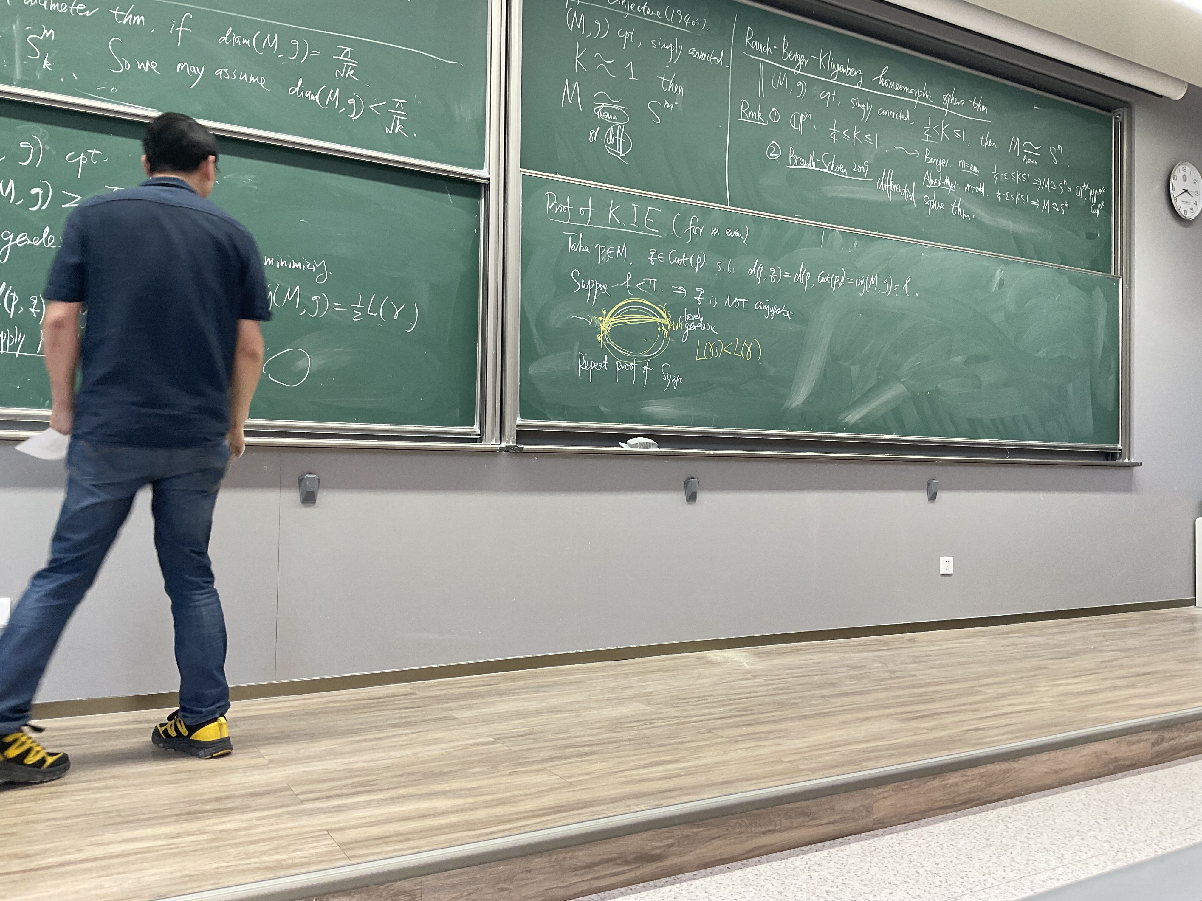 几何素养大大大大提升,唯一的遗憾就是谱理论刚开始就结束了。讲句题外话感觉一两门几何课的广度对于理论物理是不太够,可惜火老师最近有编写教材任务需要反复教一些课,不过上完火老师的课之后自己看资料的速度提高了3-5倍,小论文写了个Ambrose Singer对规范场论也有很大帮助。附带无意拍下的可爱僵尸步火哥。