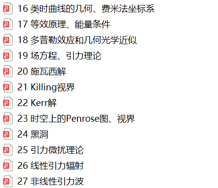 今年对原来的讲义进行了大幅度更改,变成了28章ppt,内容从数学准备一直涵盖到广义相对论的历史(就连科学史内容也是中文资料中最硬核最全的!)。总之一节更比六节强,大约是整个科大生涯最充实最硬核的课程...