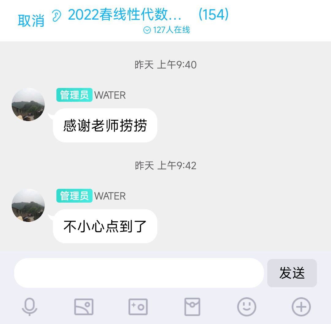现在回想这学期我给自己的安排也是有点什么大病,除了犯蠢不退物理课(反复强调以告后人),第二大蠢事当属叠了water的线代,因为本学期water没开录课、没发笔记/讲稿,导致我听课时长共计半小时。从往届评论来看讲稿是22春及以前有发,以后可能是不会发了,但是录课的事我并未咨询过许老师(我犯懒),后来的同学可以尝试跟老师商量一下,很多老师不是不愿开而是忘记主动开。要是无录课就老实听课吧,比看教材好百倍