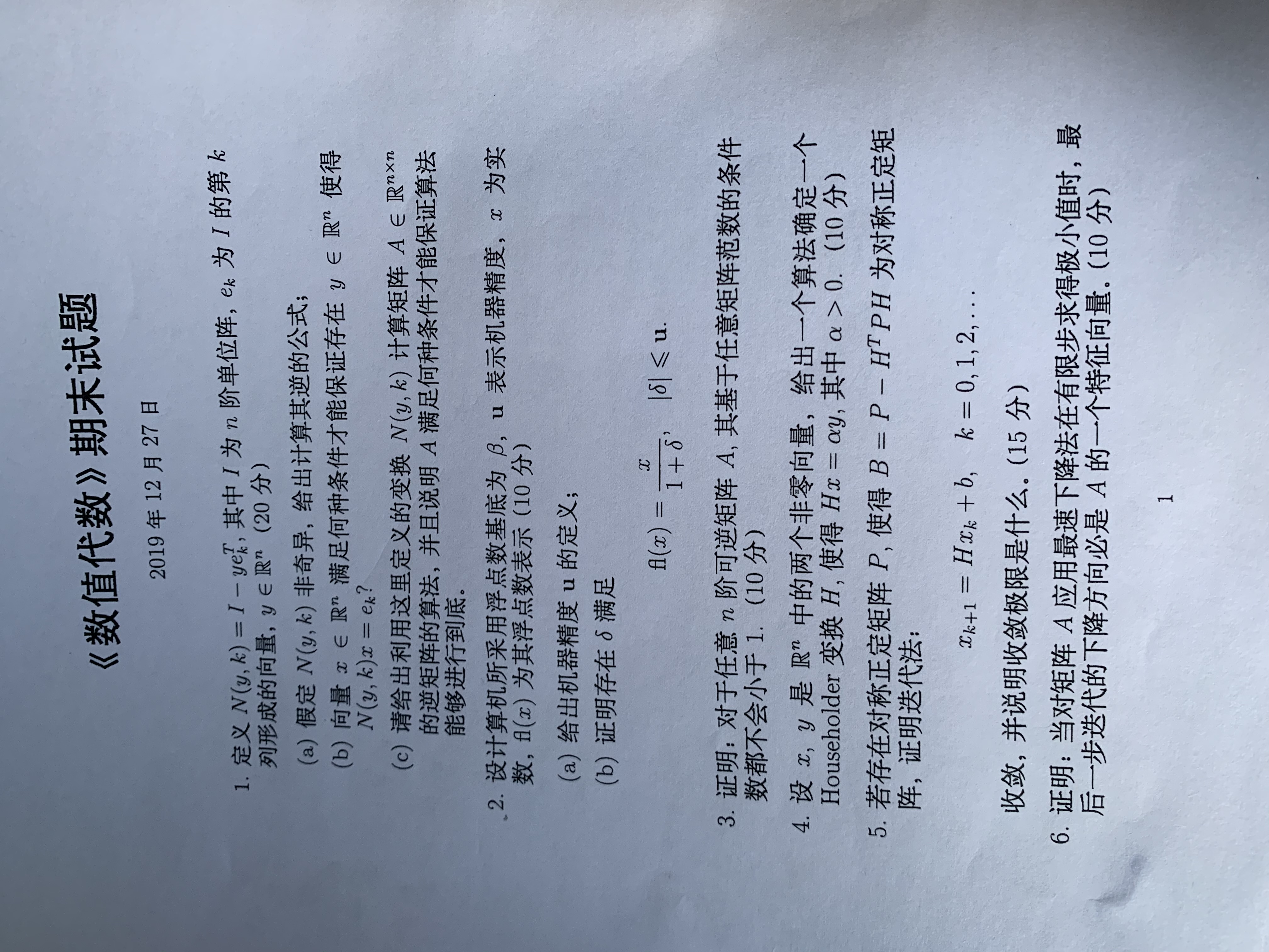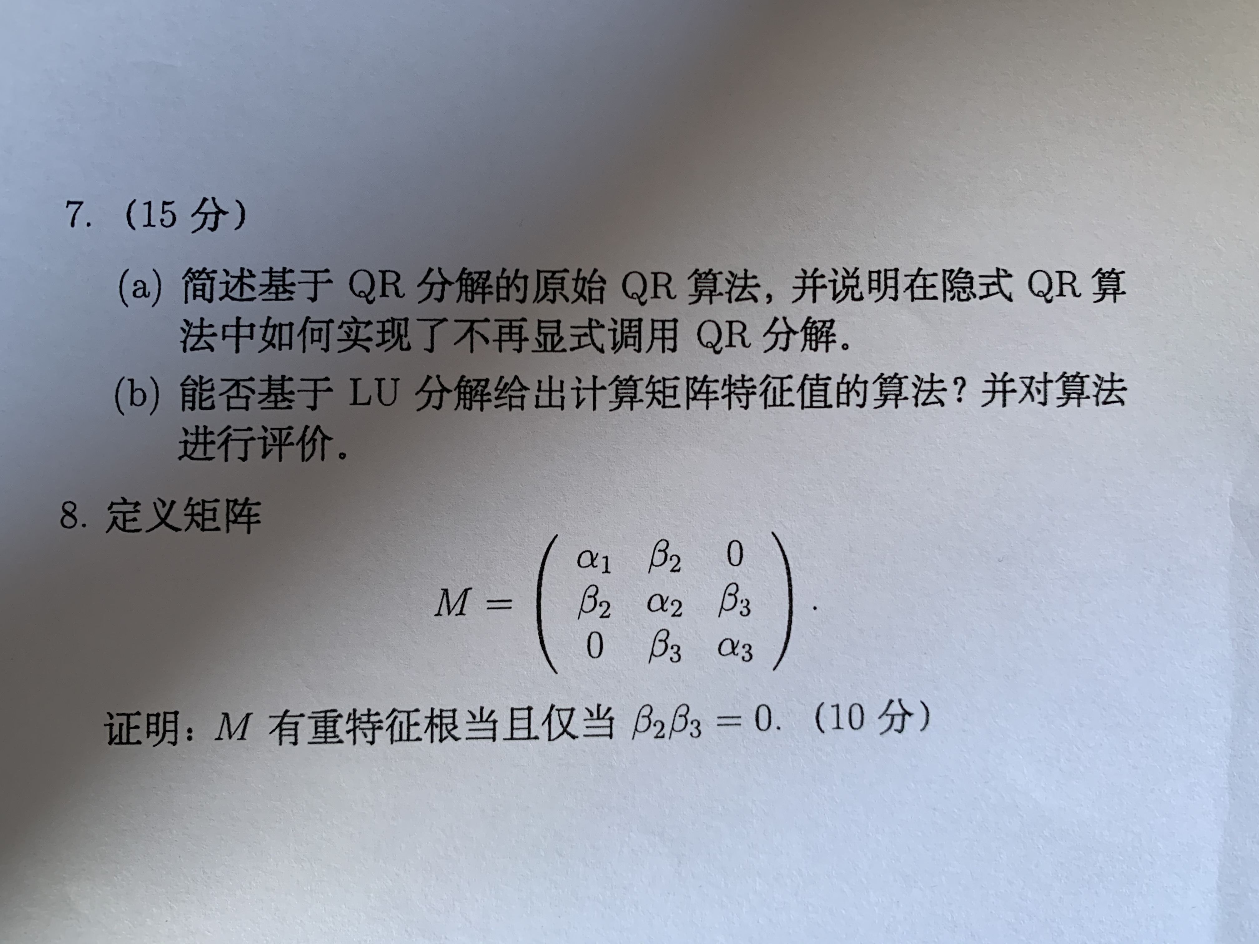 补充一下,发现出分了。吹爆邓书记。那我就补充一下自己对于这门课的体验。 这门课对于一个大二时候学的我来说感受到了巨大的痛苦,原因在于自己卑微的编程能力和对于误差估计的无奈。 但是在我花了很长的时间理解了qr方法,以及它的优化思想。我对于数学的强大,膜拜到了一个新的高度。在书本给出了线性复杂度得到一般多项式的根的数值解的时候,我震惊了。对比这个学期学的近世代数,我感觉这完全就是两个世界。 我记得邓书记说过,数值代数可以从线性代数中出来成为一门学科,主要的原因来自于qr分解。大家一定要学好qr分解,这是这门课的重中之重。 最后我还是要吐槽误差估计,实在是太折磨人了。