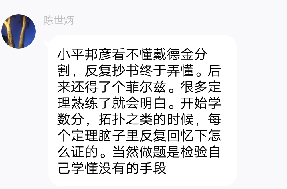 PDE部分自己在学习时过于注重细节的推导,去抠每个细节时忽略了对整体的把握(也就是所谓的“不知道自己在干什么”(〒︿〒)),并且最致命的是没有在每节课后及时消化,每周的问题、作业都堆到周末去解决,效果很差。还是强烈建议以后学习的学弟学妹们课后及时消化、缕清思路,不要像这位学长一样拖拖拖。