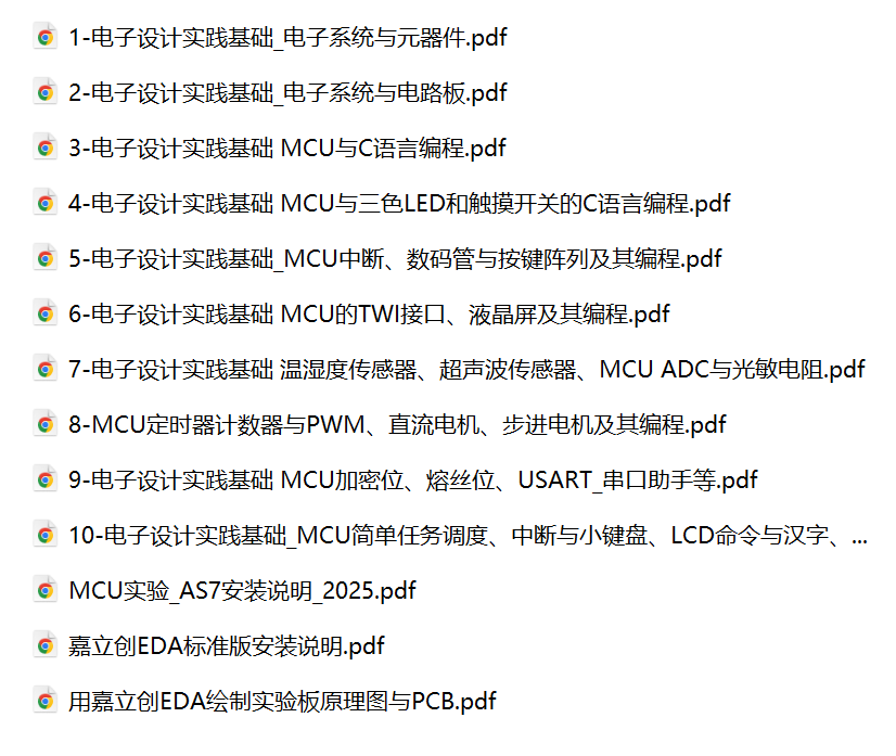 作业只有一次,是在嘉立创上画PCB板,严格按照老师PPT上的操作即可;实验有7次,第一次是焊接,后面都是写代码。代码PPT上都有,偶尔要求进行一些修改。