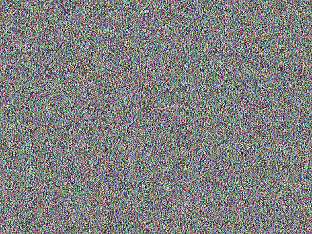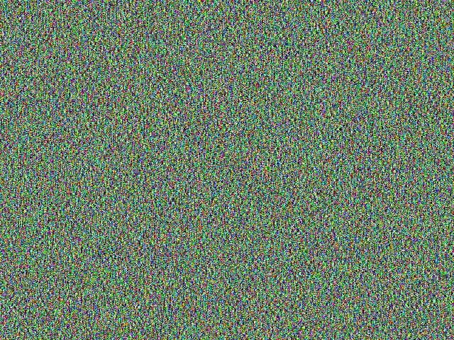 一个有趣的事实是,我写的这个 jpegify 采用 YCbCr 4:2:0 采样方式,在反复迭代加载和有损压缩 jpeg 图像文件的过程中,图片会变得越来越绿,以下是最开始生成的 640x480 噪点图和迭代加载压缩 20 次以后的噪点图,可以看到明显变绿的趋势: