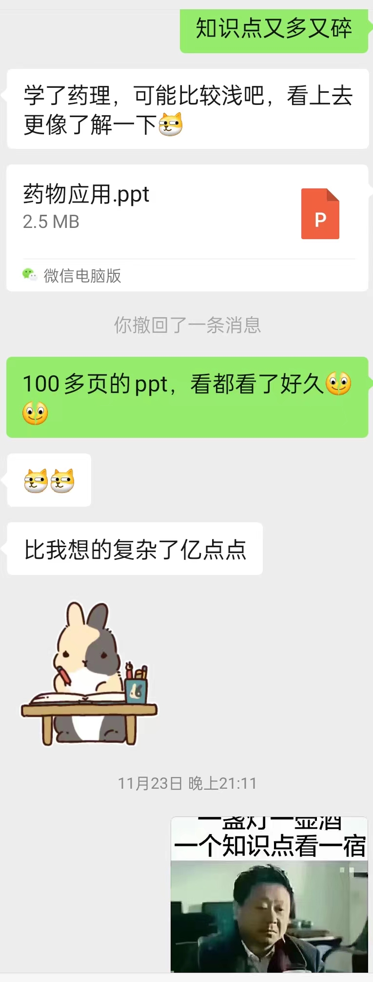相当赞同楼上!十位老师中,部分人的PPT详略不当且不成体系,有几章(尤其是药物应用一章)的PPT竟长达100多页,考前真是背到吐。我还问了科大临床医学专业的大五学长,他看了PPT都说复杂😓