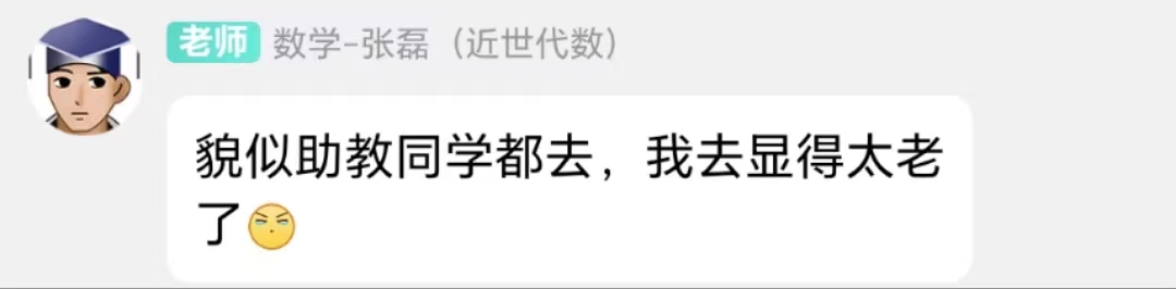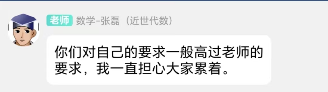 可能是我最后一次学代数课了,代数学不懂,但不妨碍给张磊老师打高分。