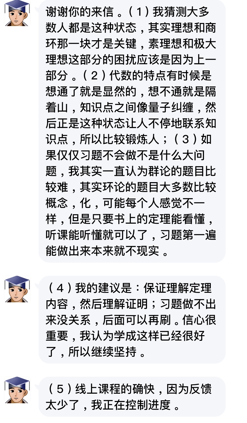 都说近世代数很难,有老师领着学起来并没有很痛苦。