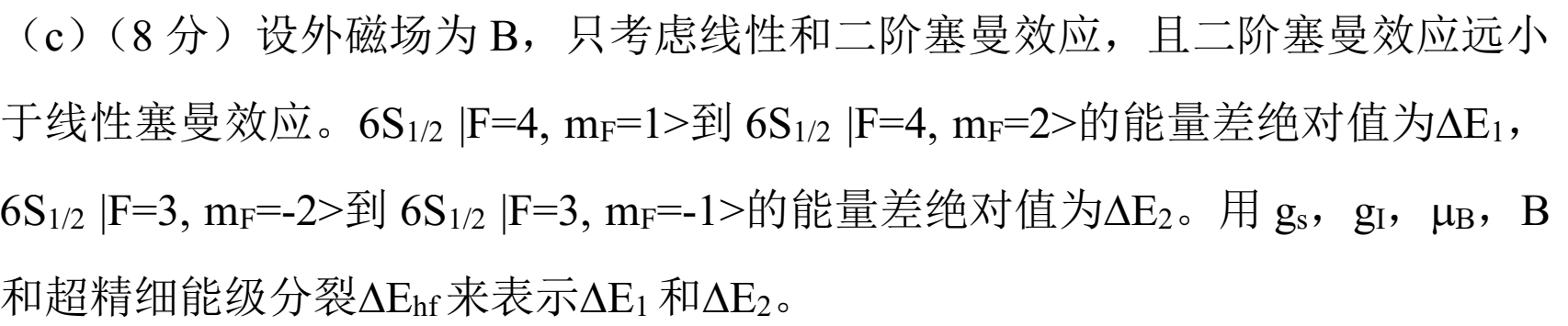 第一题算Cs超精细结构,第二题Cs的g因子和塞曼分裂,好难算,怎么算了一个小时。