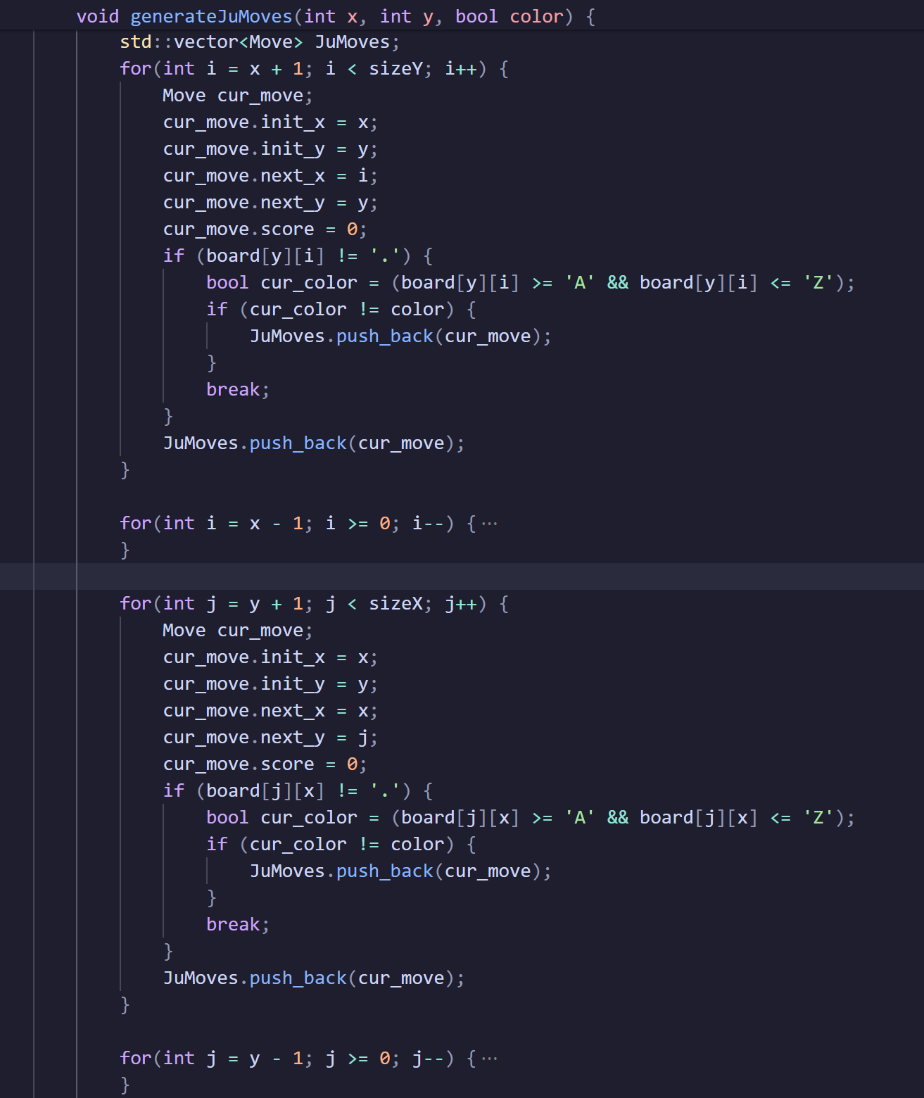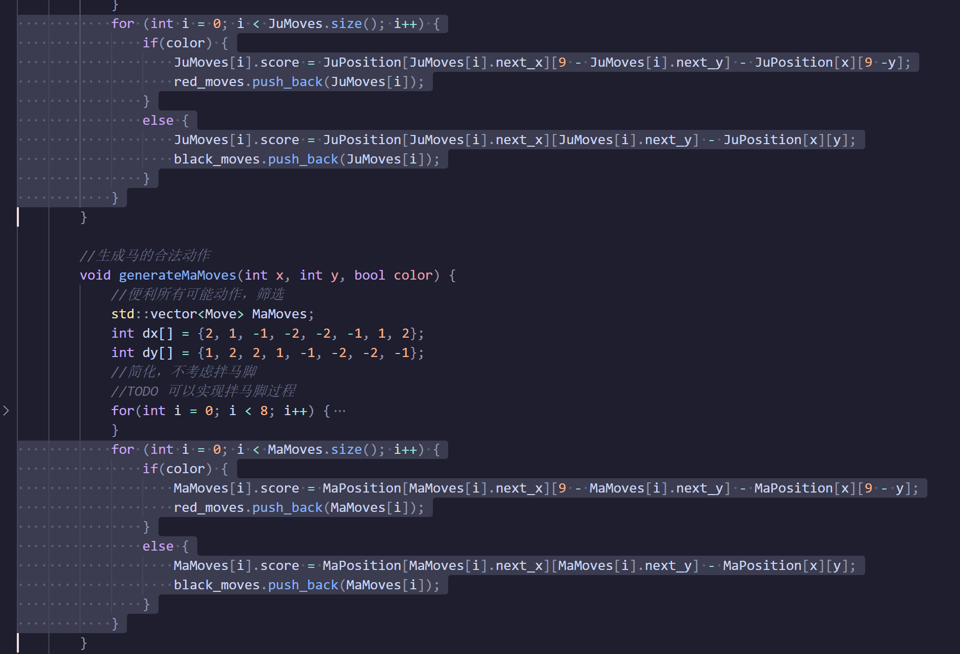 四段查重率 99% 的代码段,我愿称之为复制粘贴仙人。另外,用 C++ 写框架不会 `Move cur_move = {x, y, x, j, 0};`, 非得写 6 行显得代码量大?