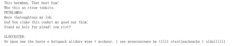 transformer的实现可以在网上找到很多完整的代码,这门课要求只需要实现decoder部分(一开始没看见,把encoder也写了)。我想大多数人第一次的运行结果可能会出现重复的字符(像下图这样)