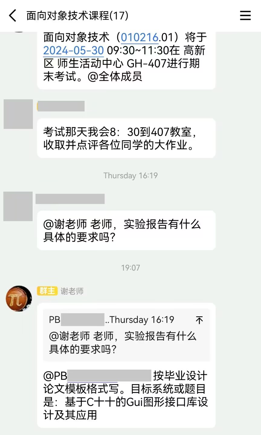 老师上课表示最后两节课(14周)会下来一个一个检查过关 GUI 大作业,乐