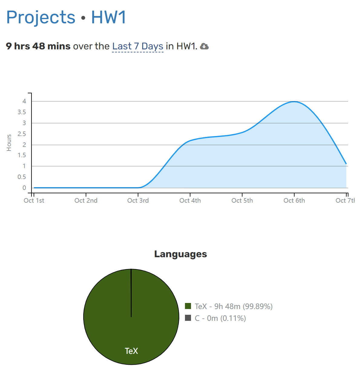 其实抛开数量和时间限制不谈, 我还挺喜欢这两次作业的题目的. 一方面它对前置知识的需求恰到好处: 既全面覆盖前置课程内容又不需要过多拓展 (除了逆天的4.3.2) ; 另一方面它又不只是定义回顾, 证明题在套定义的部分之外依然要求思维量故颇具挑战性. 我因为没有跟着学这门课, hw1的第三大题完全没看, 其它题都自己试着做了一遍, 感觉很有收获. 如果每次作业都尽力攻克每一道题, 坚持一个学期相比会对自己的理论能力有不小的提升, 虽然现实条件大概率不允许这么做就是了.