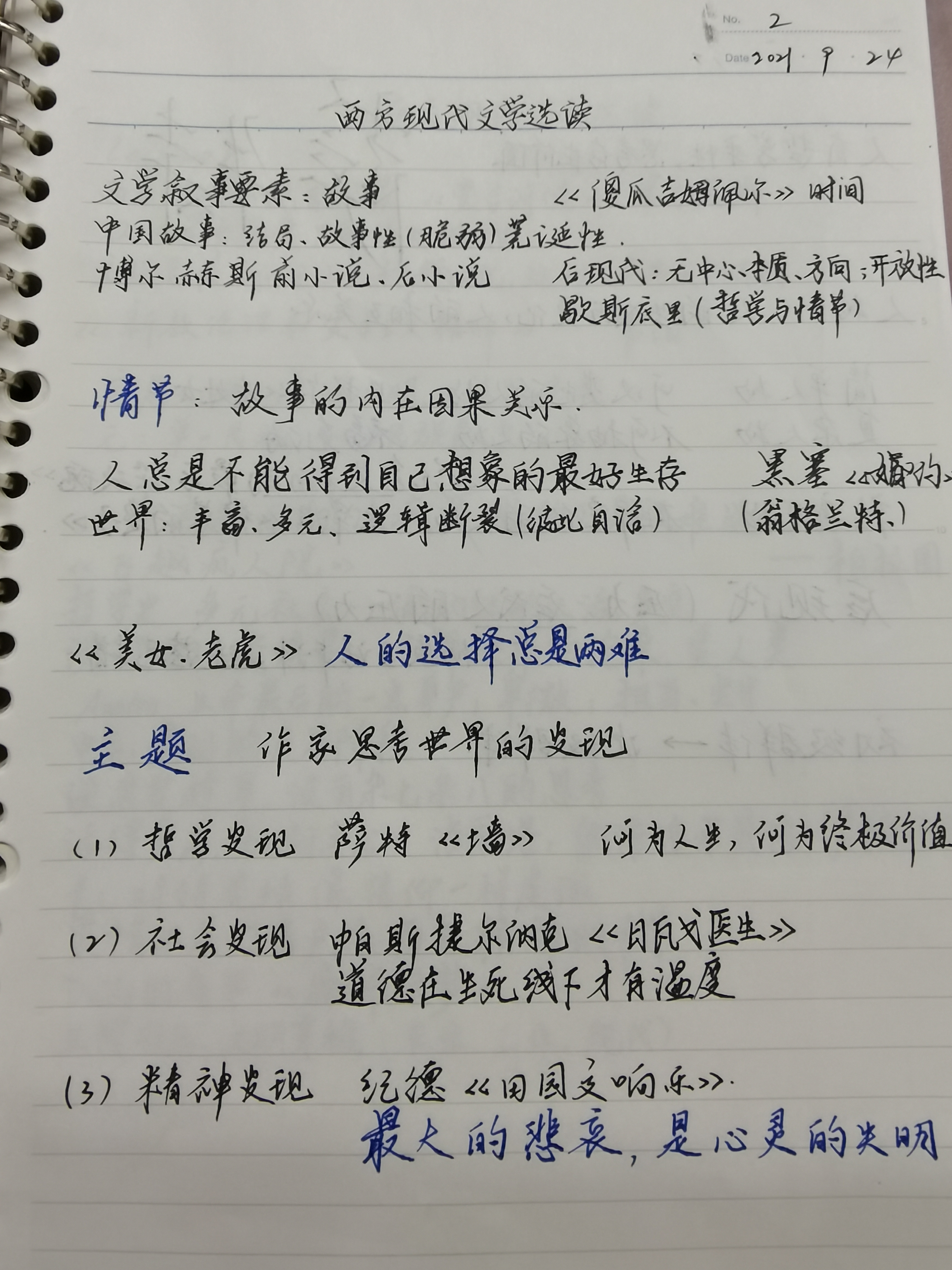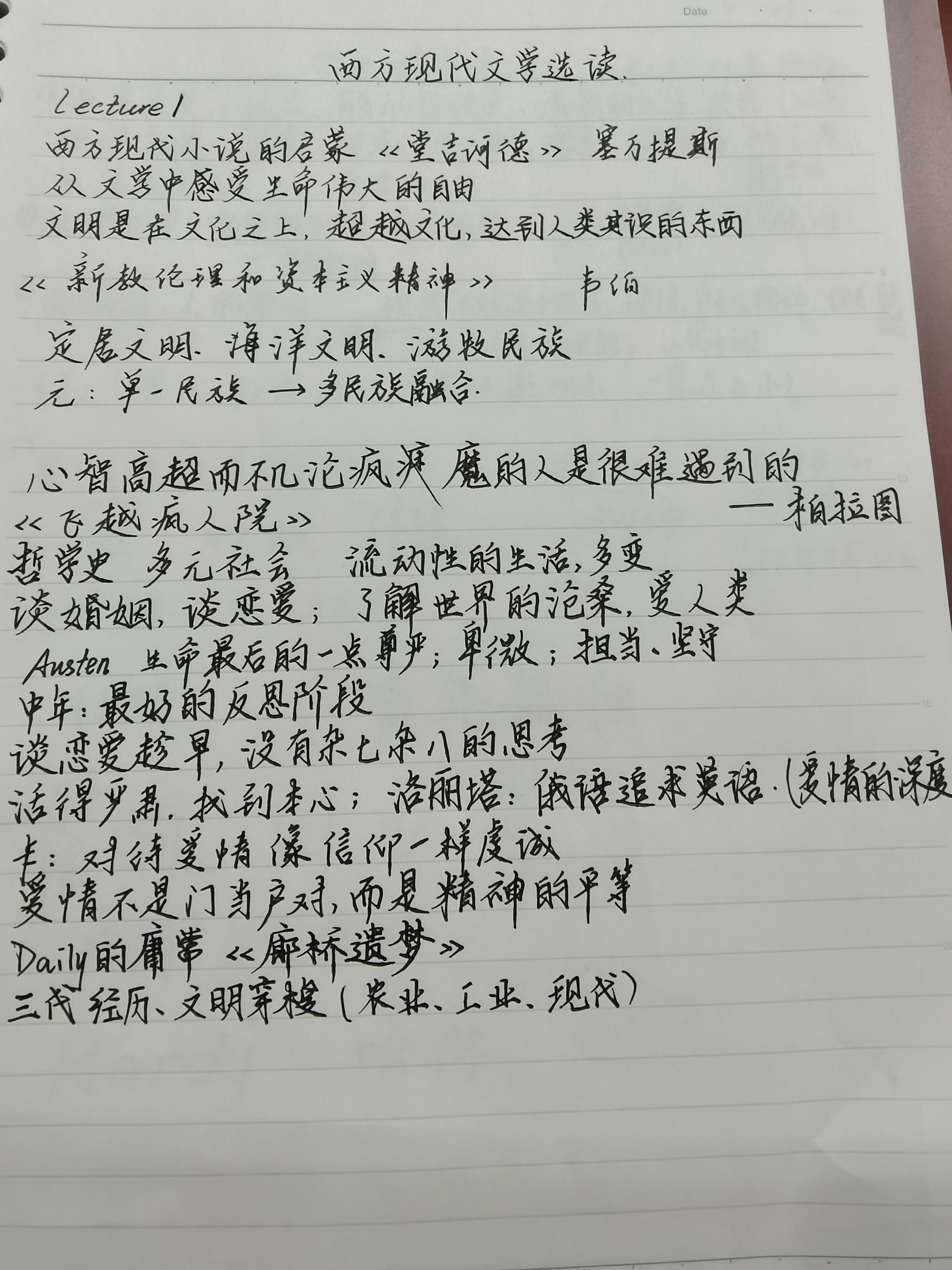 大一少院新生,上学期跟学长旁听了梁老师的西方现代文学选读,现在简单的谈一谈我的看法