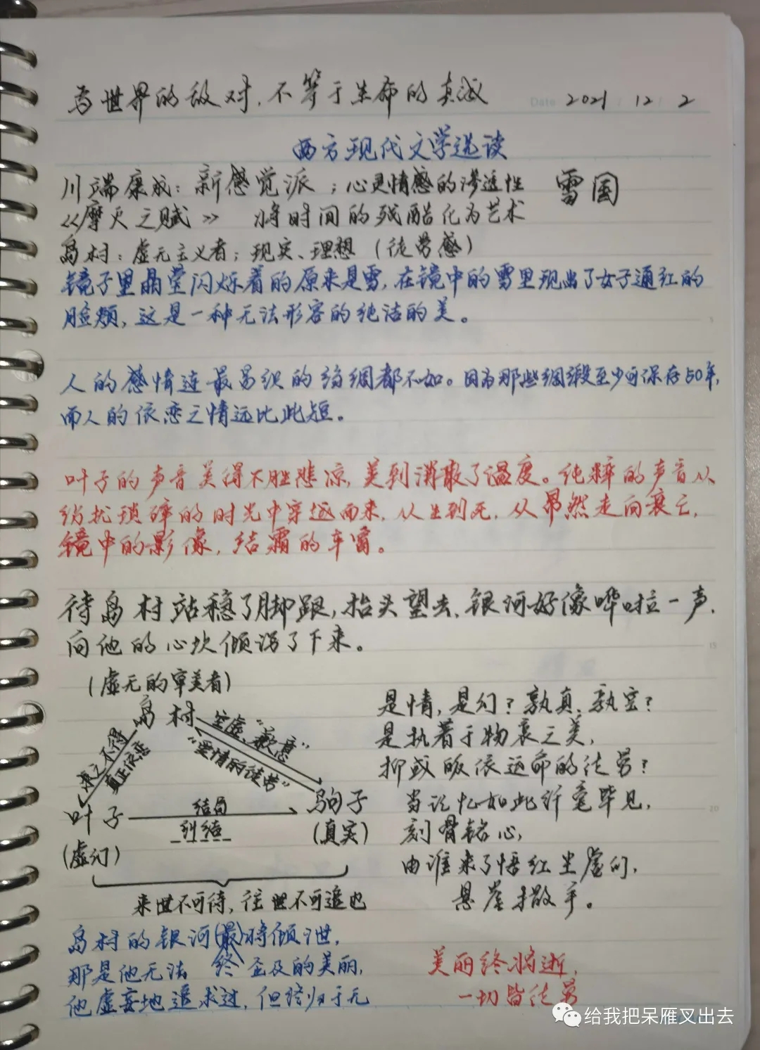 其实我之前看的书更多是中国文学,绝大多数精力集中中诗歌和小说,倒是西方的电影看过不少,记得刚开始老师列书单的时候,绝大多数我没有看过。这门课程的设立,也给了我一个契机去接触和了解外国文学,令我印象最深刻的当属川端康成的《雪国》,学长在文学社所讲(zby yyds!)、我自己所感所知、日本导演如岩井俊二的作品和老师对《雪国》的阐述,各有不同,但又回到一处,这种知识和思维的交汇真的很令人感到满足。同时,像《Lolita》,《都柏林人》这种不同寻常的笔法,也令我感到了巨大的震撼