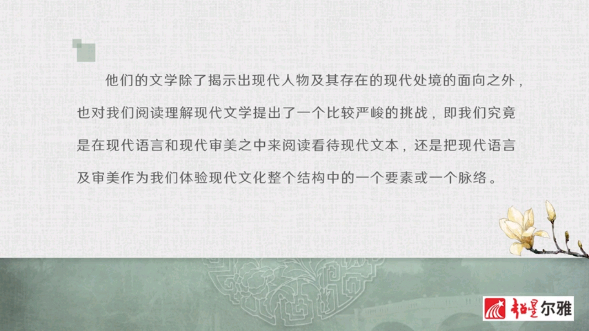 课程内容涵盖中国现代文学名著,通过视频课程与线下课相结合进行教学。每章内容都有独特的见解和新的惊喜,对文学作品的解读系统且富有专业性。虽然趣味性稍逊于其他文学课程,但专业性较强。