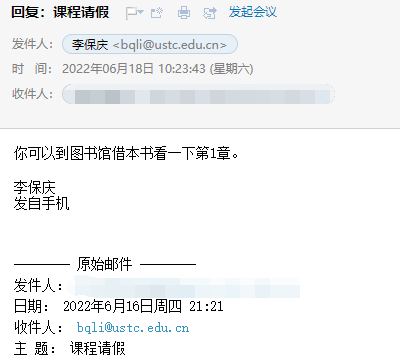 是这样的,我暑假本来选了这门课,但是因为一些原因,第一次课上课的时候在外地,没法去,然后跟老师发了邮件,问有没有网课。过了两天之后,老师回复了。