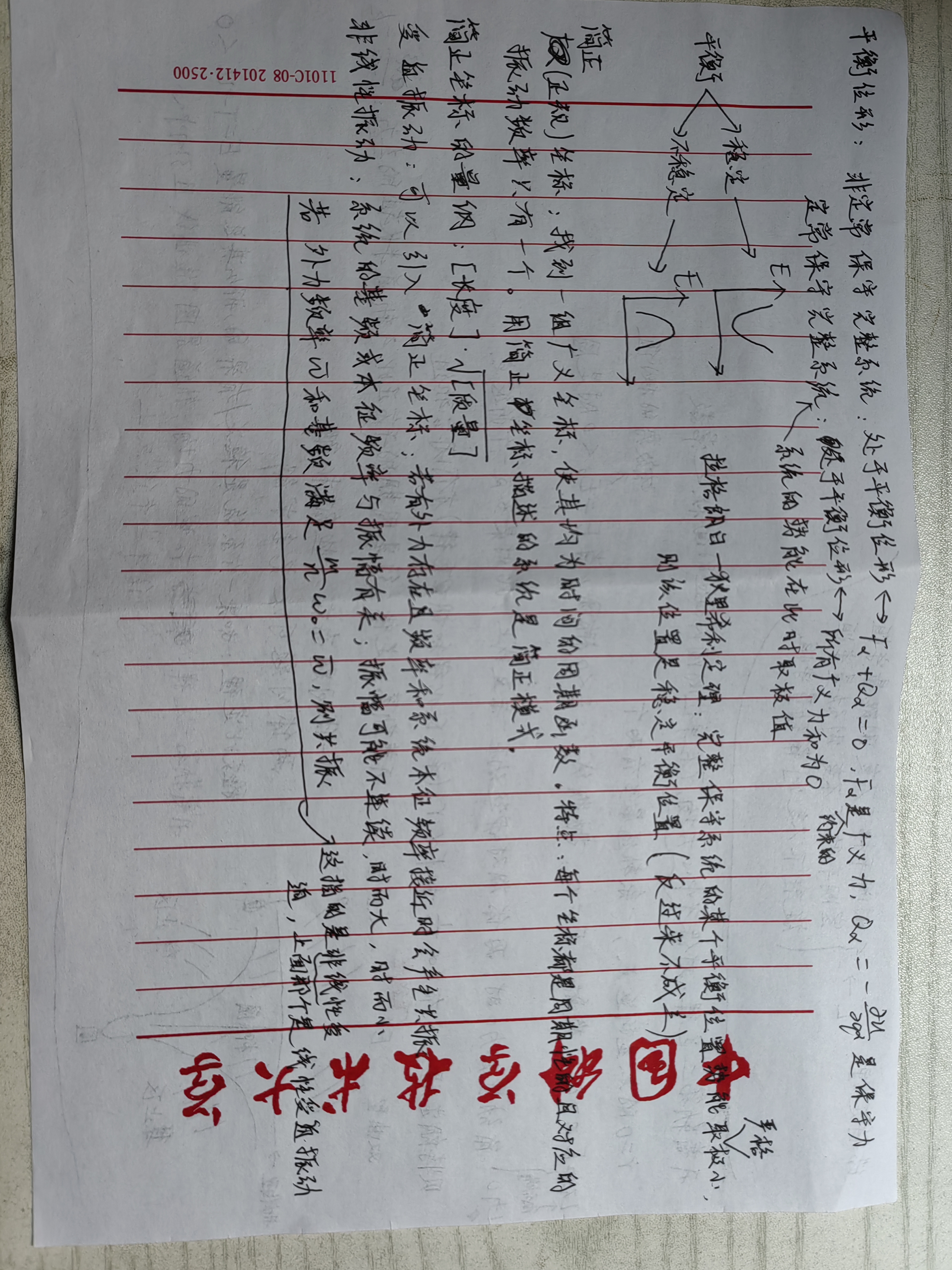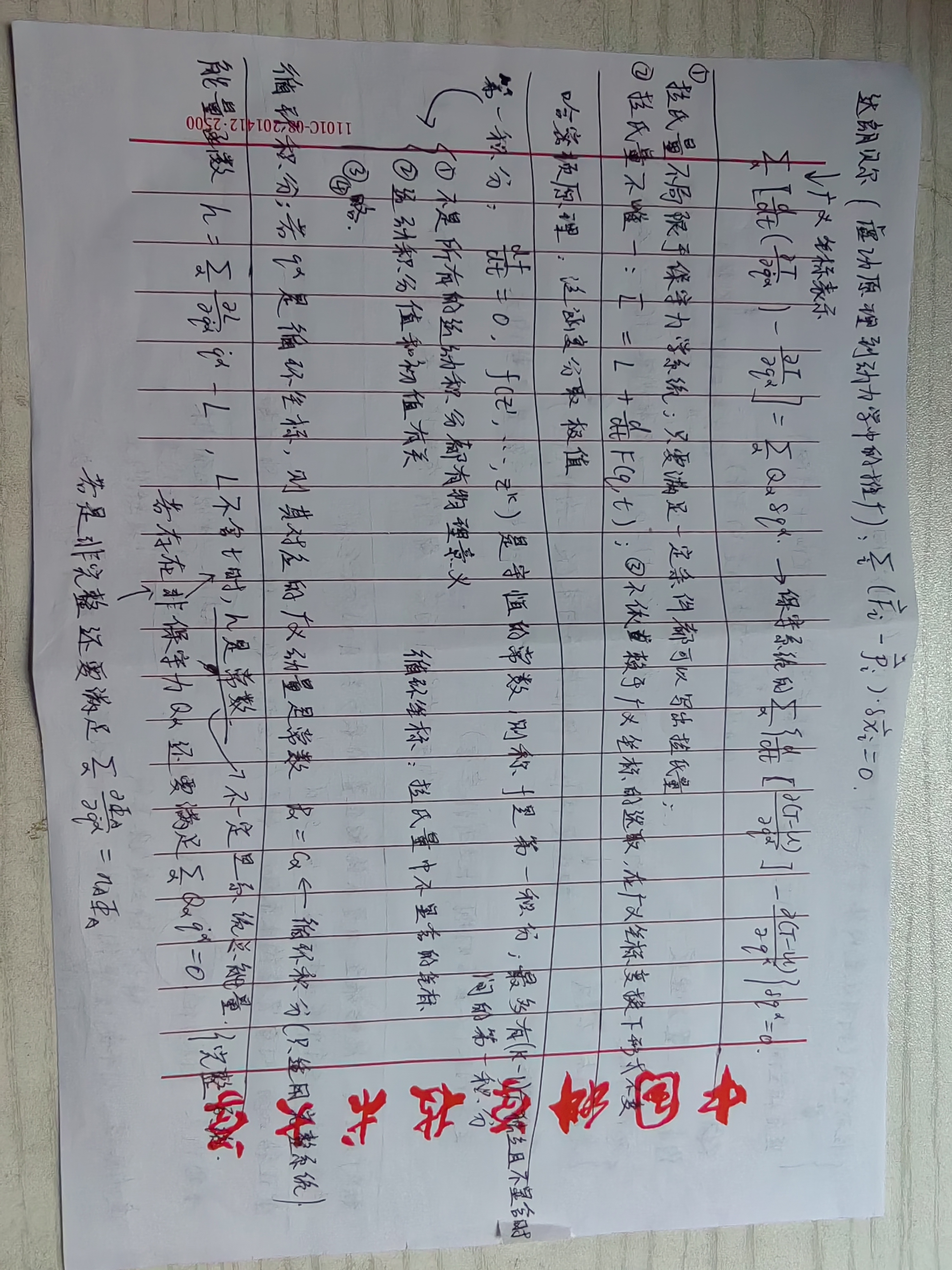 题型分布具体为15单选,5多选,2简答和3公共大题,简答题一个是考哈密顿原理一个是诺特定理,大题是正则变换计算生成函数和哈密顿量;取朗道规范磁场中带电粒子HJ方程的求解和拉格朗日陀螺。具体来说都是一些公式的简单应用,作业题基本上都能涉及的到,曹老师上课也暗示大家多看看拉格朗日陀螺。