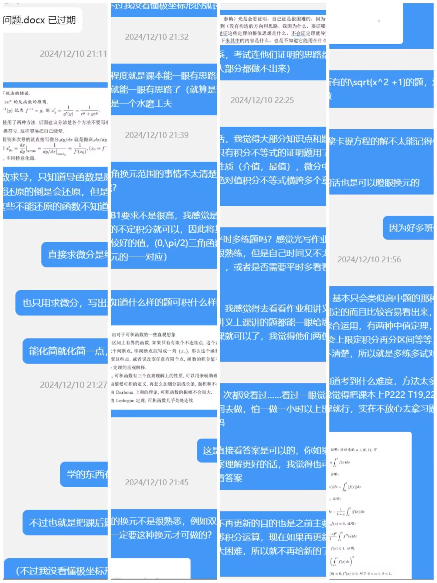 其中或许有人和曾经的我一样,没有熟识的学长、没有进取的室友,还囿于社恐不敢向其他人求助。学数分的时候遇到难题,在课程群里不敢说话,问室友会打扰到他们连麦,找助教也是几天不回,回了也是敷衍了事。因为自己曾在雨中奔跑,所以我不忍心看到他人在此间迷失。
