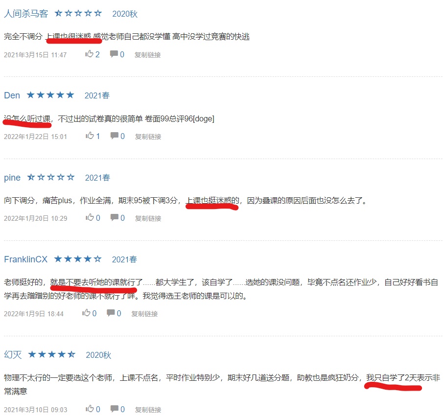 给好评的大多是从不听课,考前看PPT的,就像是通过奇妙的互联网欣赏纯真野性之美的集美们,当然心满意足。
