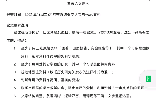 线上部分在学习通上完成,由复旦大学李宏图老师讲授,讲的还是很精彩的。22春的作业是论文(好像论文的要求每次都一样?),会在学习通上打出论文的分数,看其他点评说给分不怎么样,应该是如此。