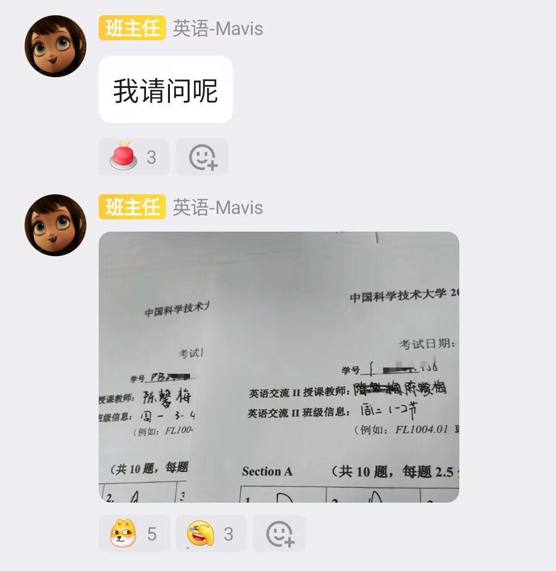 一个有趣的小插曲:因为老师的中文名字比较“难写”,她在课上特别强调,如果考试时不会写,可以写英文名,但就是不要写错😡😡😡。最后不出所料: