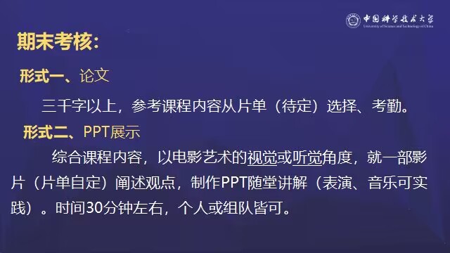 关于给分,期末大作业有两种形式,3000字论文或PPT展示,老师说如果做PPT展示,分数是A-起步。我做的PPT展示,花了两个晚上细心准备了一下。为了把电影剧情讲清楚,把原电影重要情节剪辑拼接做成视频,对着视频口述剧情。选的电影可能比较符合老师的胃口,而且我对于电影剧情介绍、视听语言赏析做的比较具体,没有泛泛而谈,可能给老师留下了好印象吧(当时讲完老师就专门做了一个比较高的点评)。最后我得到的分还是挺高的。感觉想要拿高分,最重要的还是得有特色吧,让老师能够记住你,不然两个班两百多个人,不排除像其他同学评价的那样“随机”给分的可能。