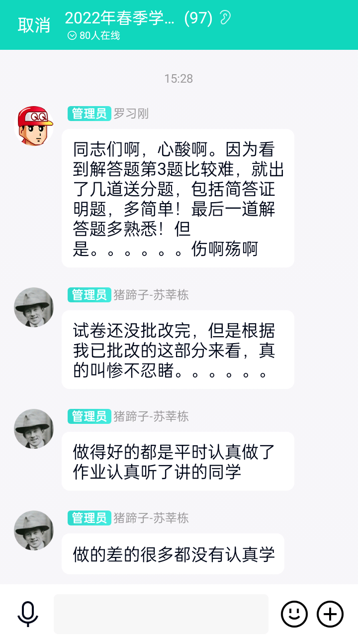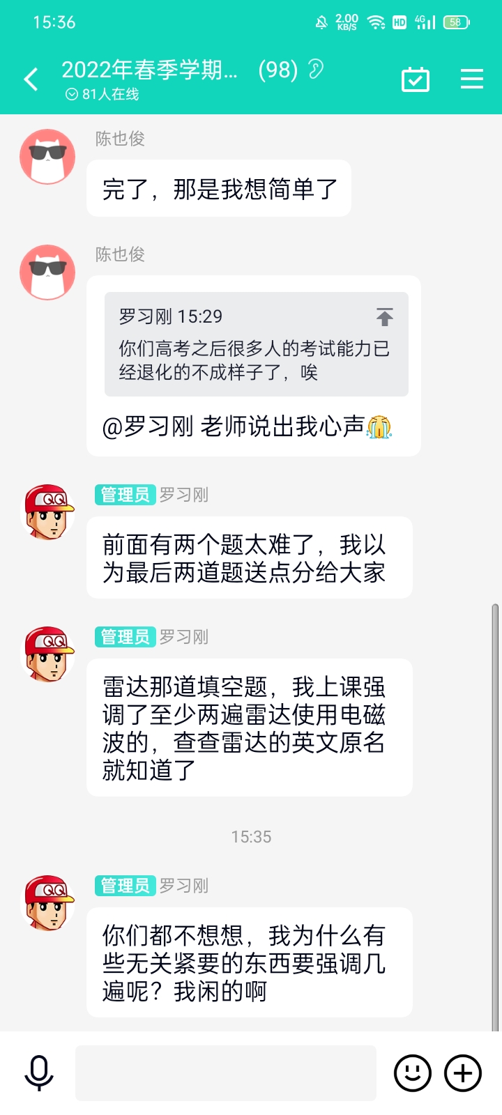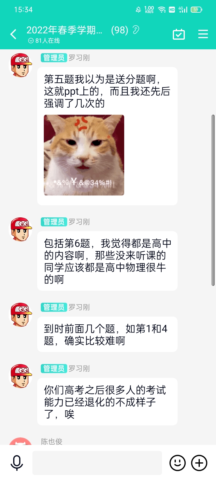 截取一下下课罗老师对同学们说的:“我优秀率就给了30,调分不想调了。你们同学现在不是不出国了吗,在乎这个GPA干什么?”