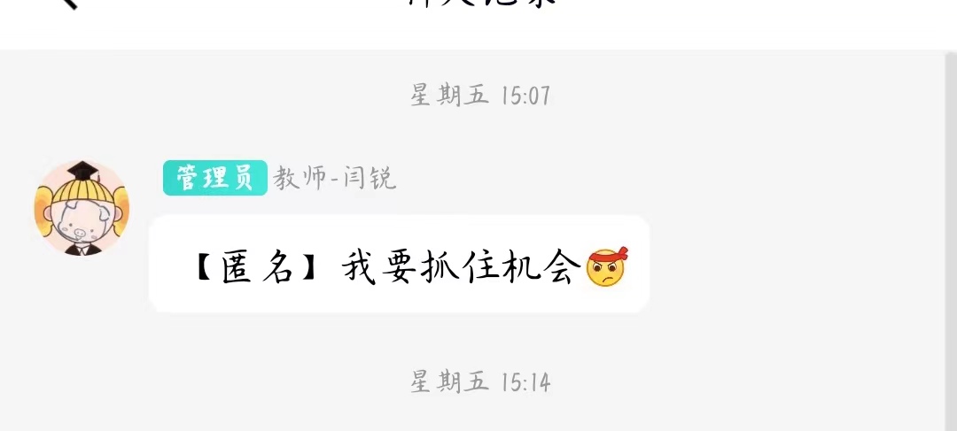 课程群里比较热闹,开了匿名,可以随便讨论,不过因为有一次有人发了过于逆天的言论取消了一段时间,大家还是好好讨论比较好。